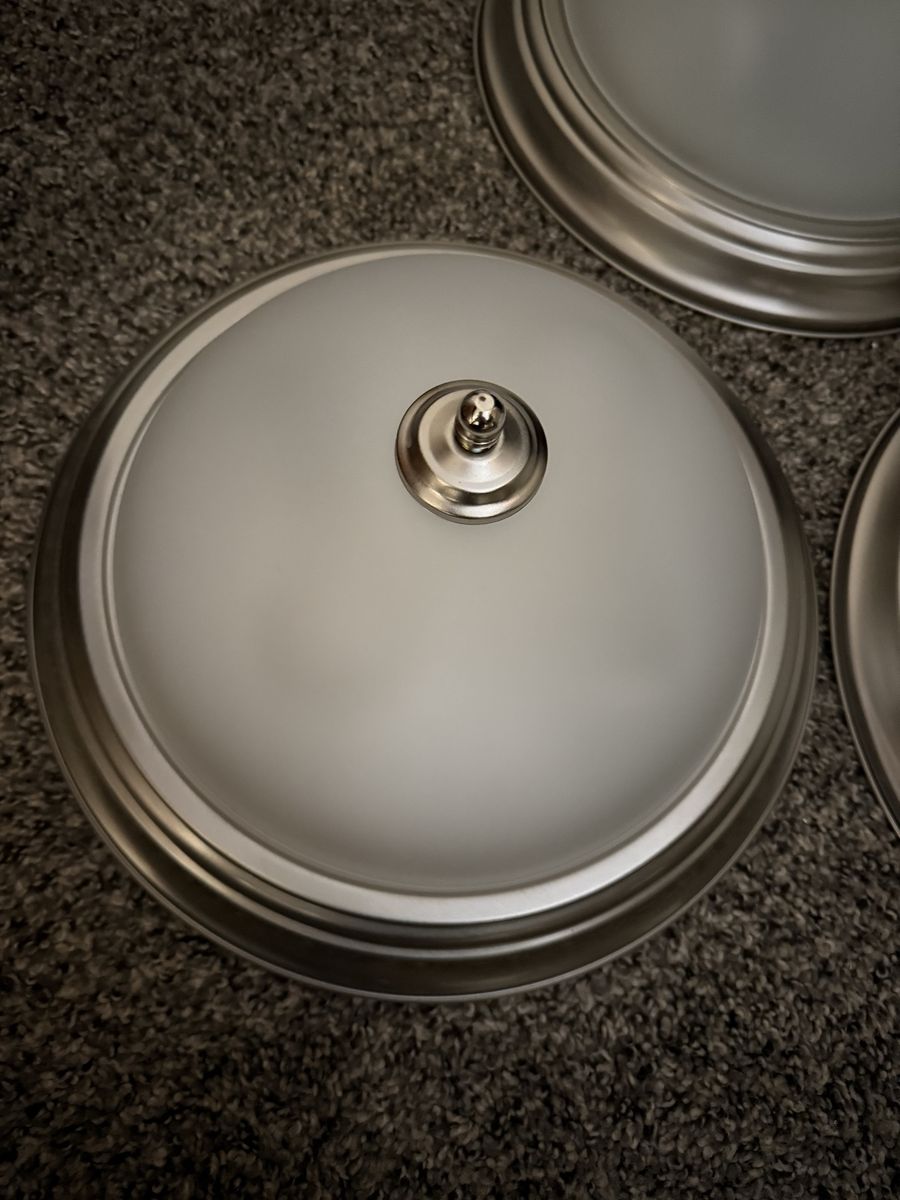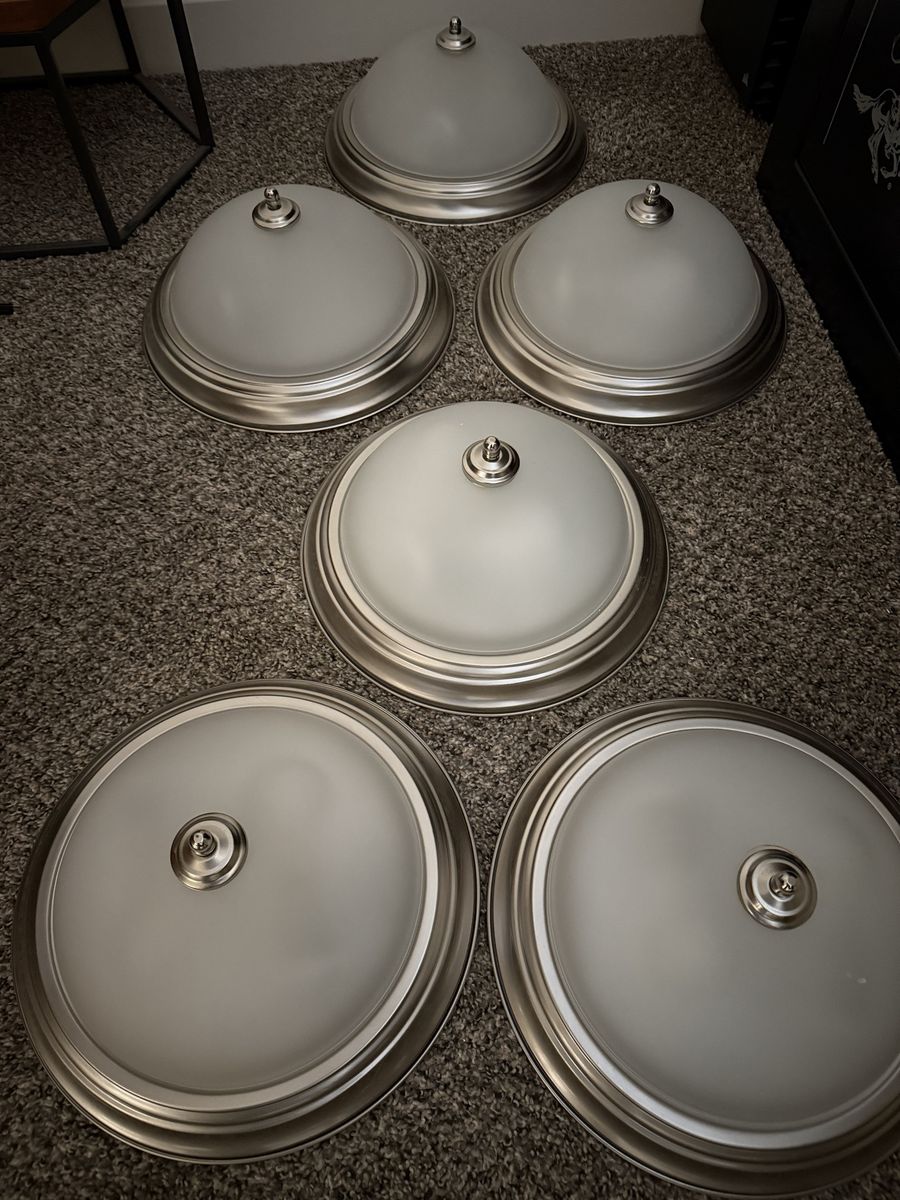 Zelle6 ceiling lights, brushed nickel in good condition. $10 each obo.