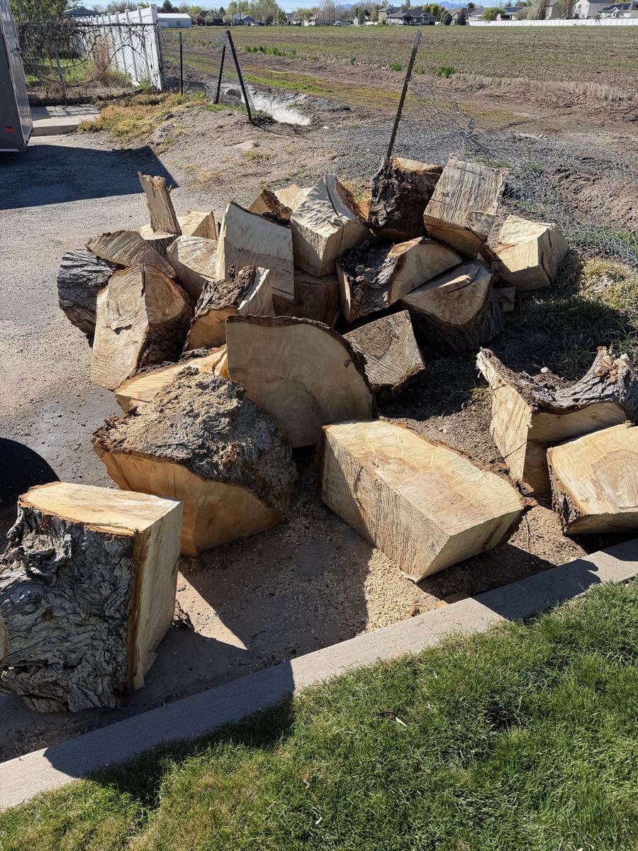 Big heavy logs good for carving and fire wood. Must be able to load yourself. Take whatever you need.