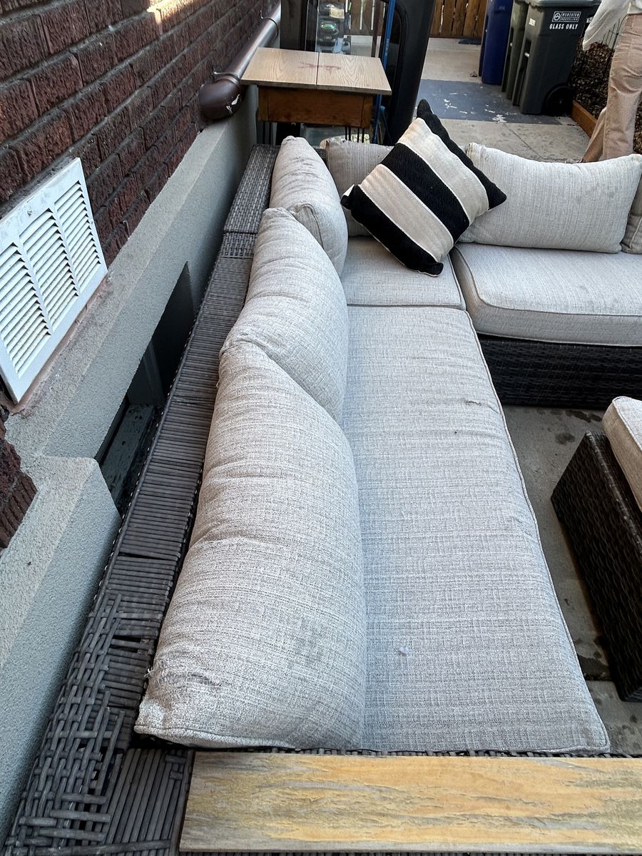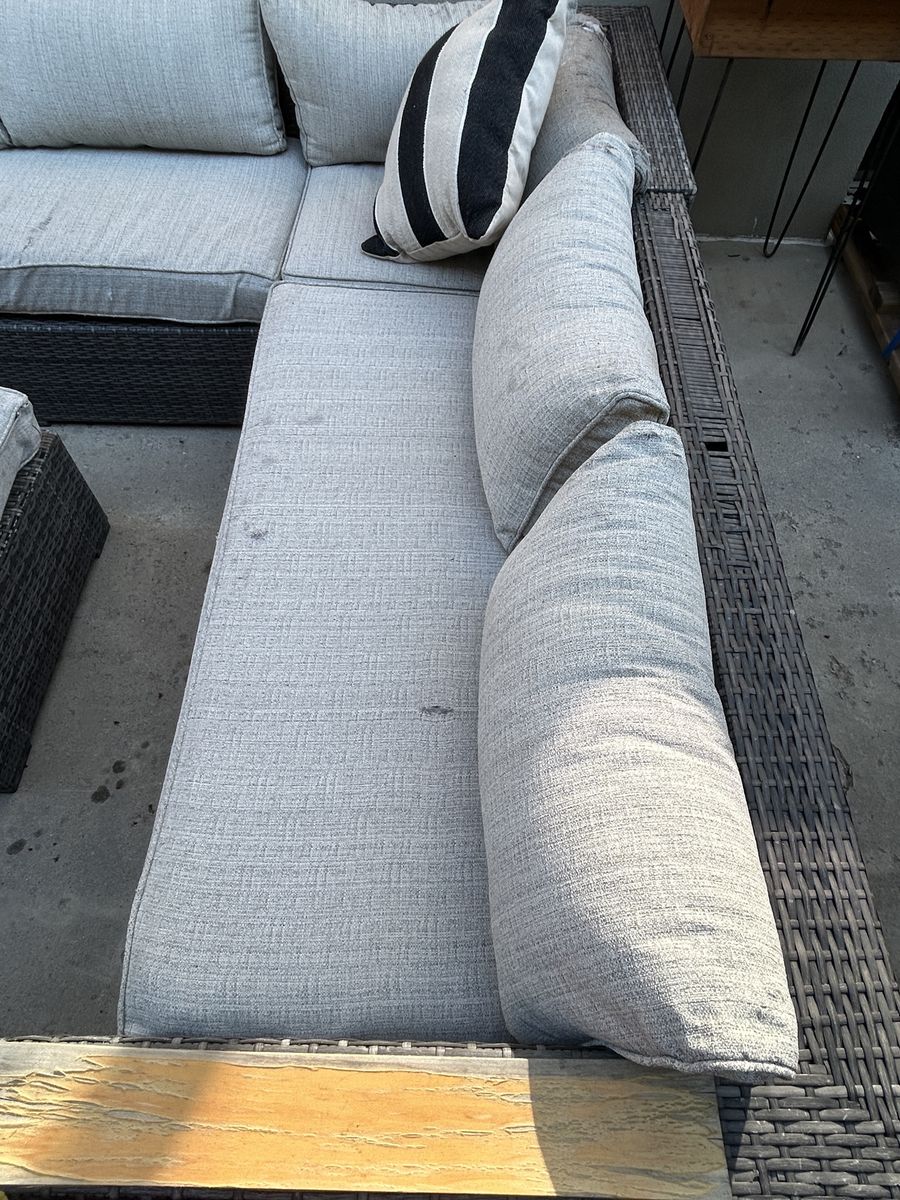 Venmo4 piece woven wicker patio set - structurally no problems but the arms and back have started to separate (see pics of and the wood boards on the arms). The fabric holding together the cushions has also started to deteriorate after a few seasons outside so it looks good this season but will probably need to be reupholstered in the future (see pictures for fraying seems on pillows and cushions).