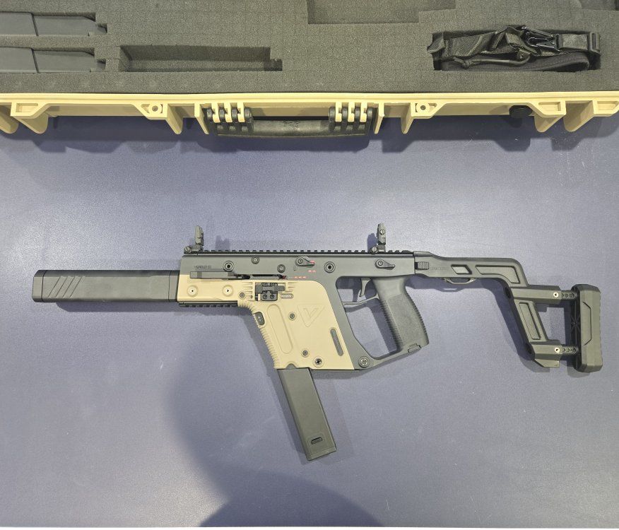 Airsoft Kriss Vector AEG, mint condition. Only 1 full magazine's worth of BBs has been shot from it, I just never pull it out and it's unfortunately just sitting in my closet unused.