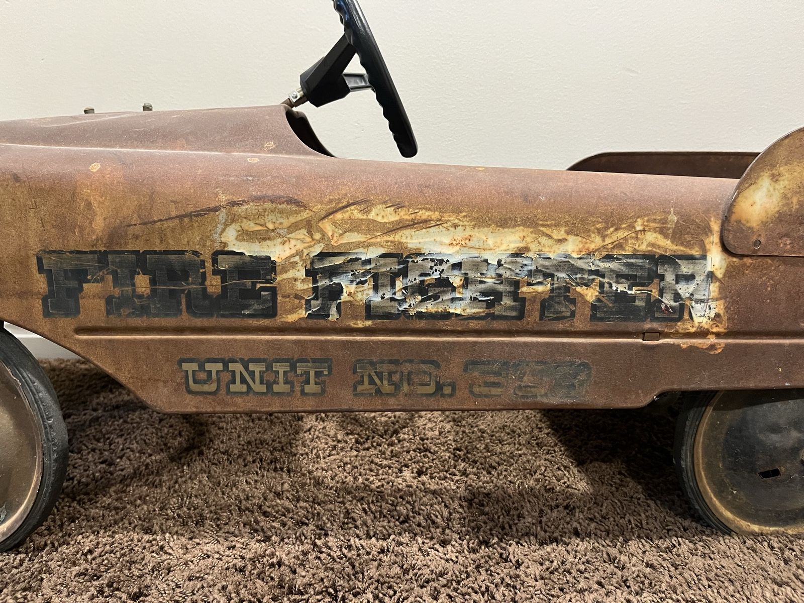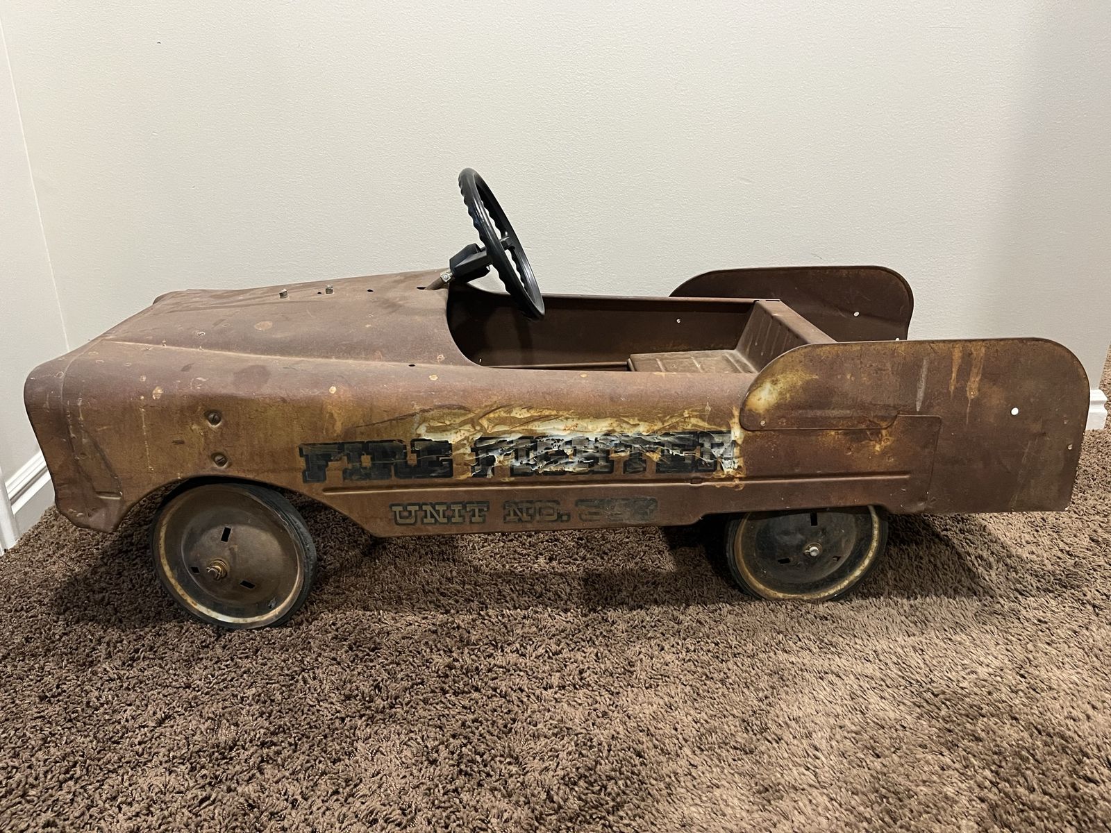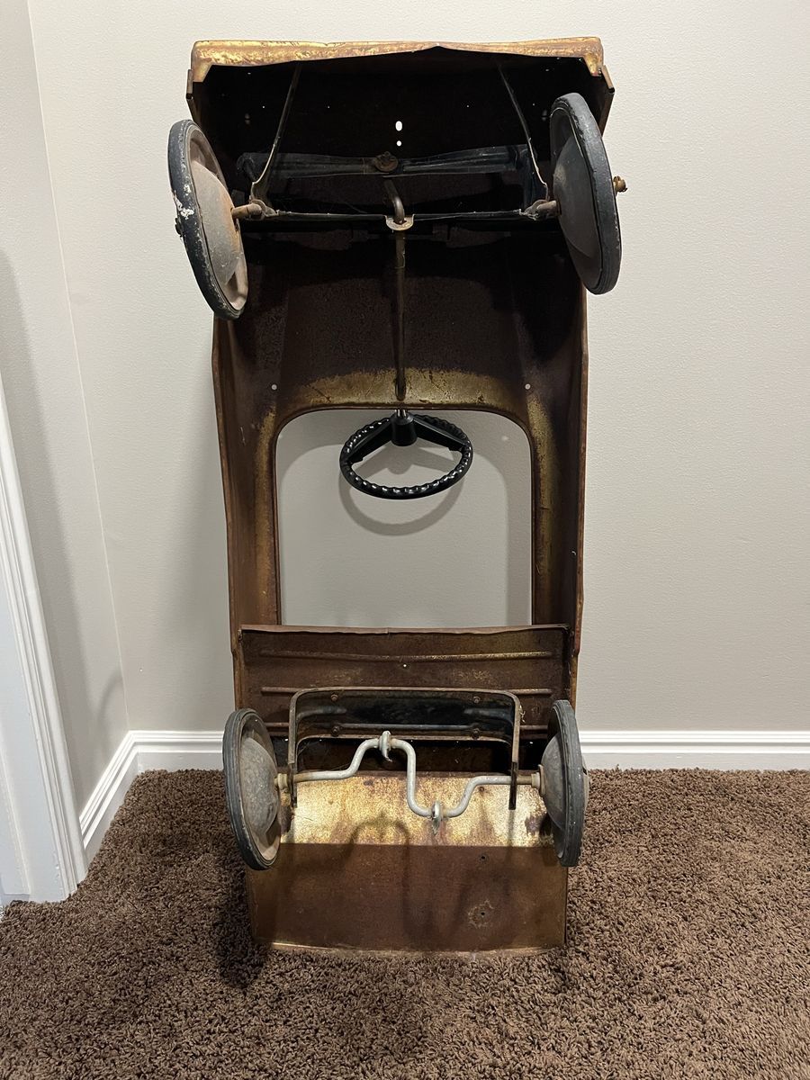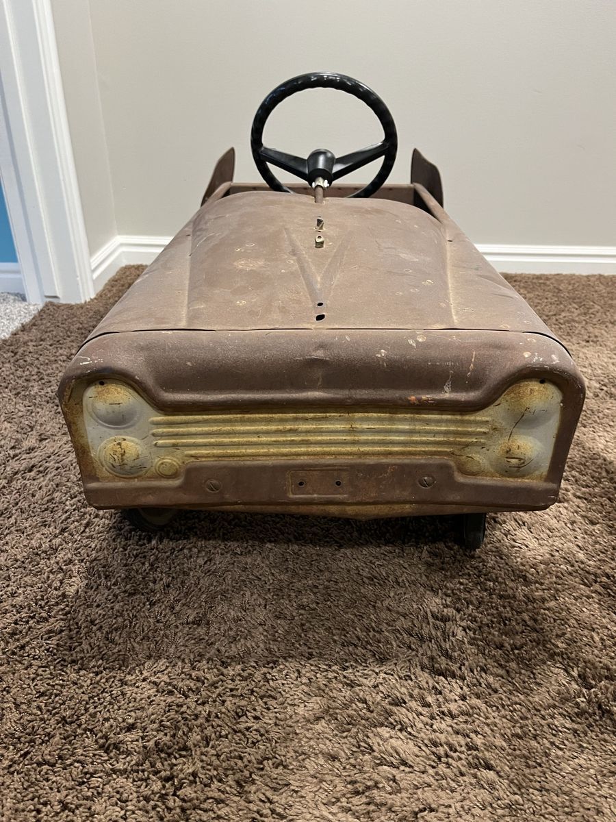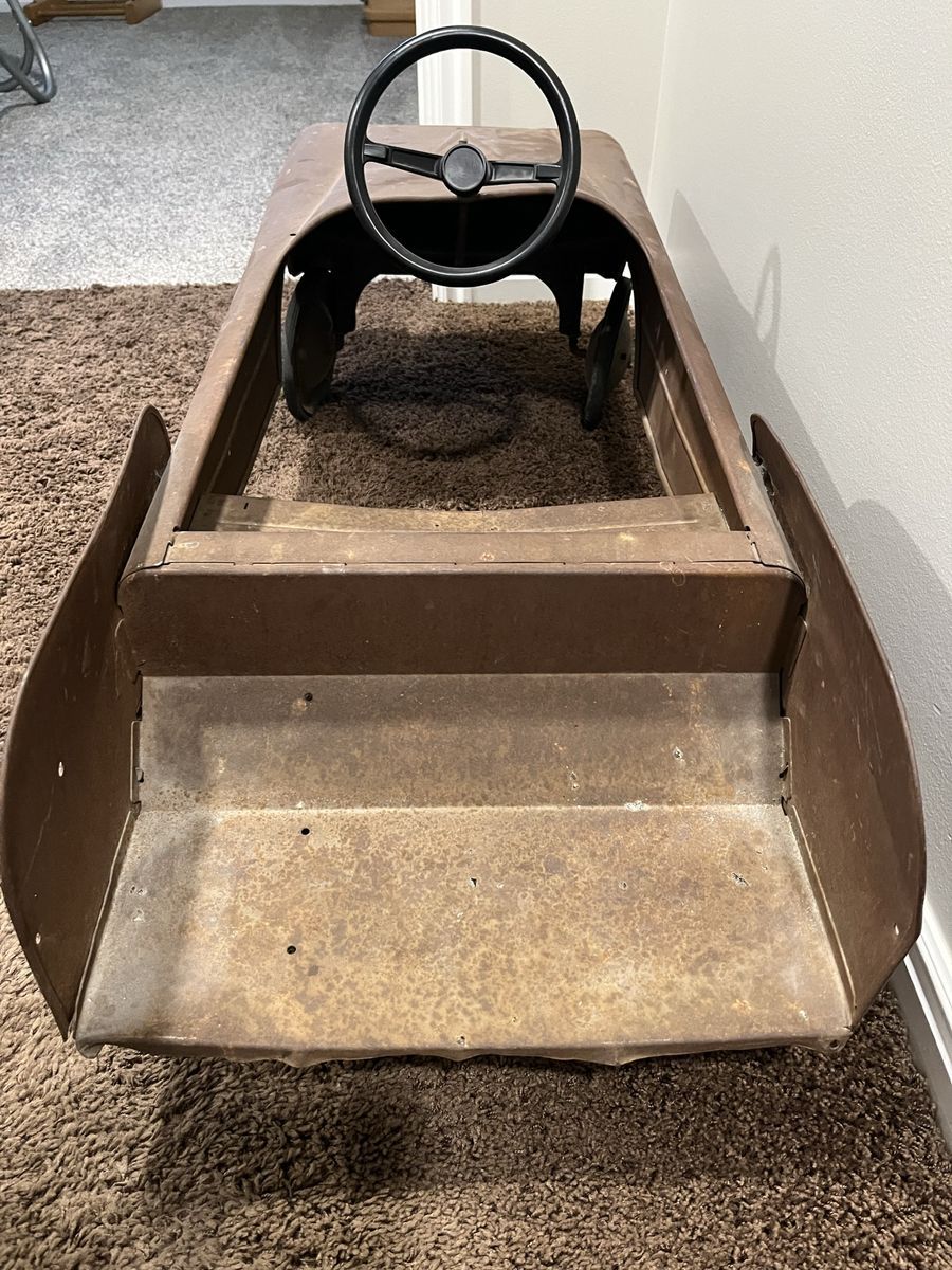 VenmoThis vintage pedal car is from the 1950s. It is a great restoration project or to enjoy as is. There is no rust through, The pedals are missing and the steering wheel is a reproduction. This is a great piece of history.