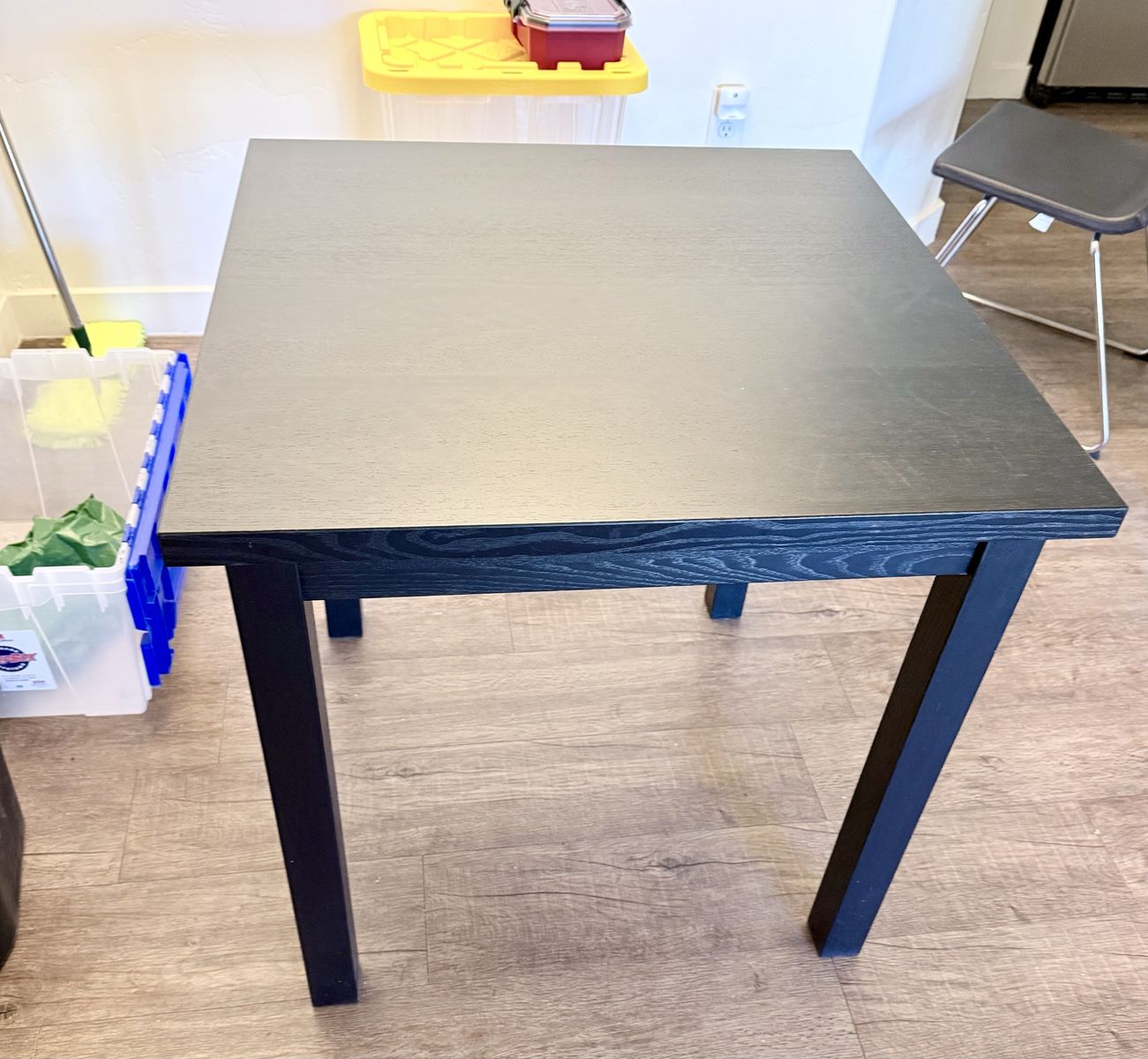 ApplePayIn great shape, IKEA square table. Top is in very clean shape. Missing the extension, but it’s still a usable table. 28x28, 30” height. Fits two chairs comfortably, four in a pinch.