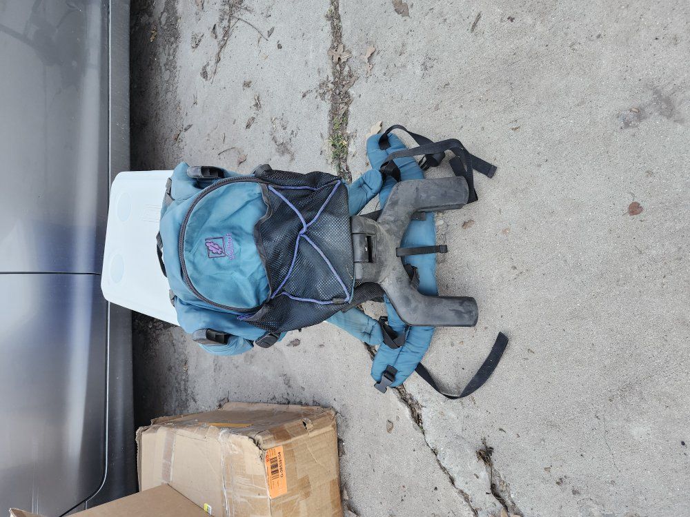 baby hiking backpack. in good condition, sounded like a good idea at the time but realized I hate hiking and barley used its been packed away for years. cleaning out the garage and it's gotta go
