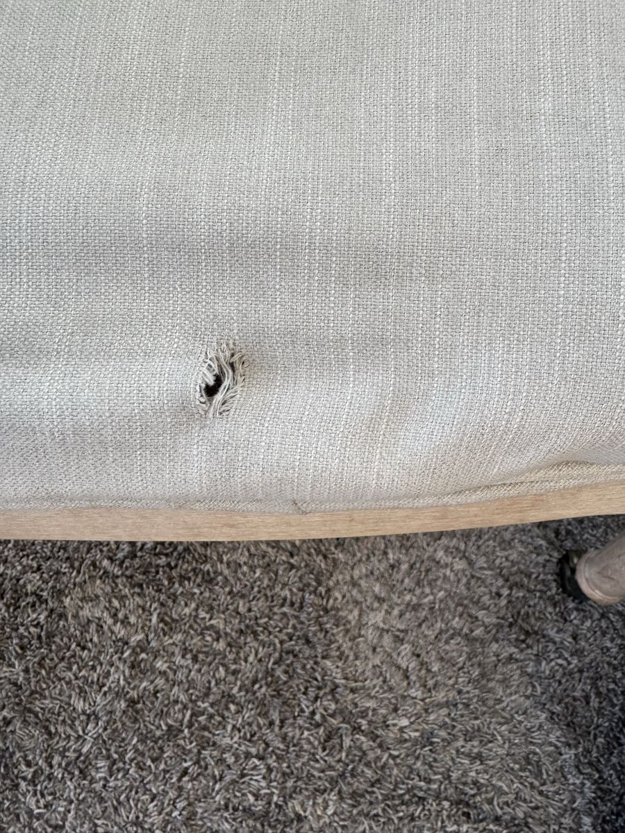 Once a beautiful chair. Still has a great frame. The springs started breaking away underneath the seat cushion and then the fabric ripped. The dog then decided it was his chair (hence the stains). If I had the time, knowledge, and tools, I’d repair and reupholster it. Seeing how I don’t have the knowledge or time I’m now giving it away to just get it out of here.