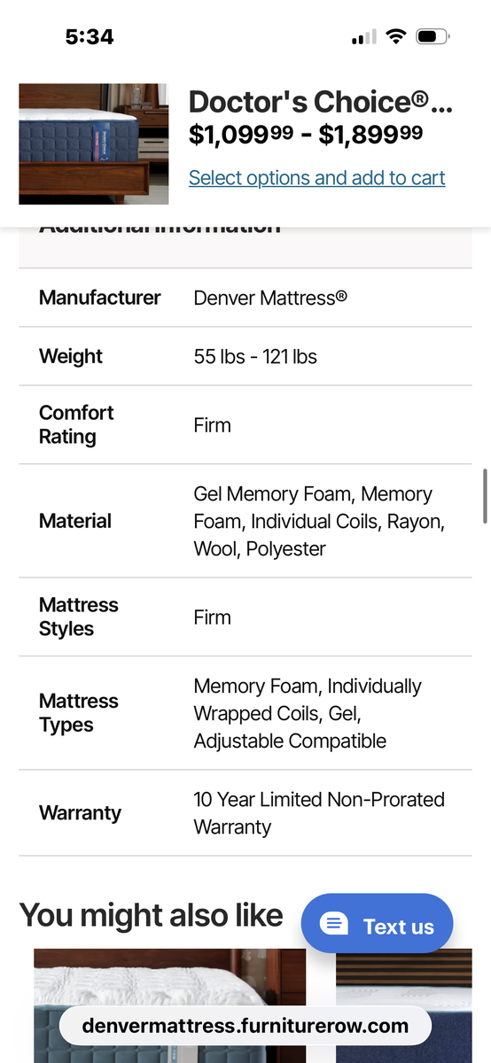 PayPalDenver mattress split king purchased August 2024 but delivered October 2024. Husband refuses to sleep on it and I finally gave up. Was put in our guest room. Has always had cooling mattress protectors on it. purchased from Denver Matress.