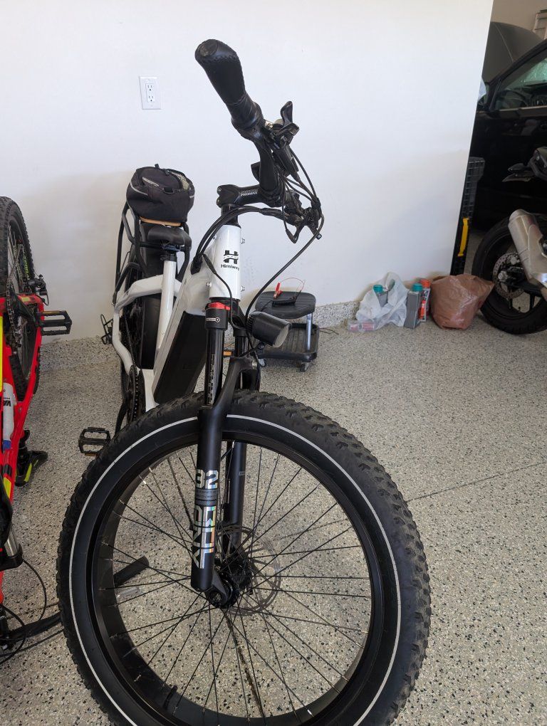 This bike is less than 2 years old and has always been in the garage. It has been ridden a dozen times and has only 610 miles on it. It has a 750 W motor with 400 lbs payload capacity. This is a robost bike with exceptional battery range (battery power is at 100% ), and can go up to 40 miles on throttle or up to 80 miles with paddel assist. It is a fast bike that can go up to 28 mph prety quickly. It has fat tires that makes the ride more comfortable. It has break light, bright front light, and cargo rack. Please text Mike at 801-726-1642 if you are interested.