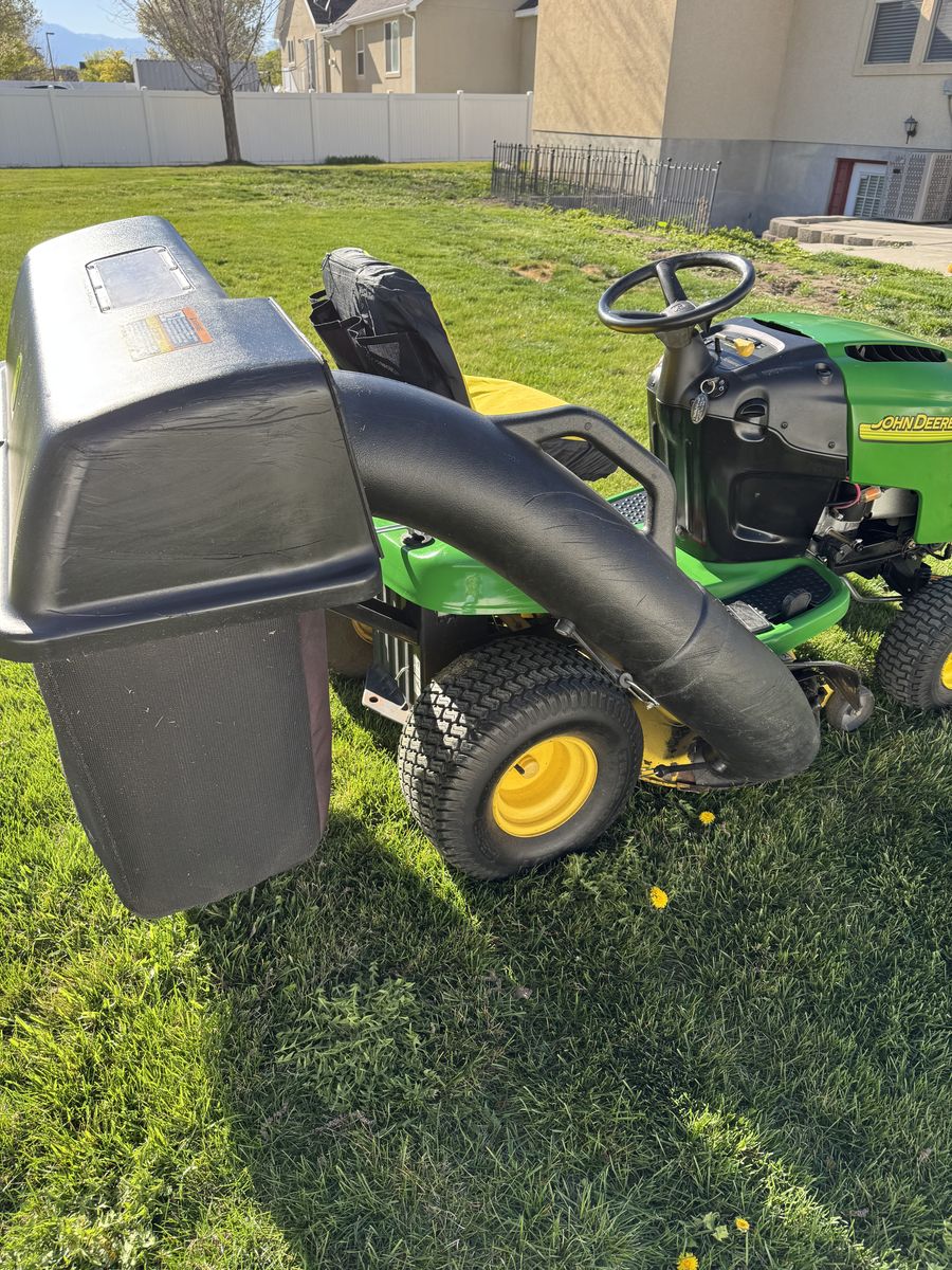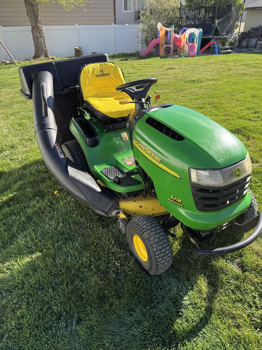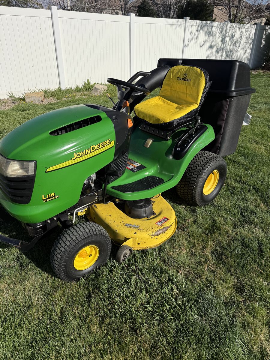 VenmoJohn Deere L118 Automati. 22 HP Twin Valve 42 in cutting deck. Double bagger. Just gone through.