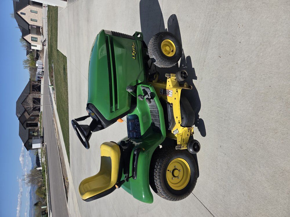 VenmoI'm selling my john deere lx277 all wheel steering. I've own it for the last 7 years, its been a great mower! I no longer need it since moving to a new house with a much smaller yard. its is in really good condition besides the hood. When I bought it, it did have some hood damage done by the previous owners grandson. The rest happened when I had it in our storage unit while our house was geing built, and a heavy box fell on top of it. Everything stil works great and needs nothing to start using. It has mulching blades, a new battery and freshly serviced. feel free to call of text with any questions.