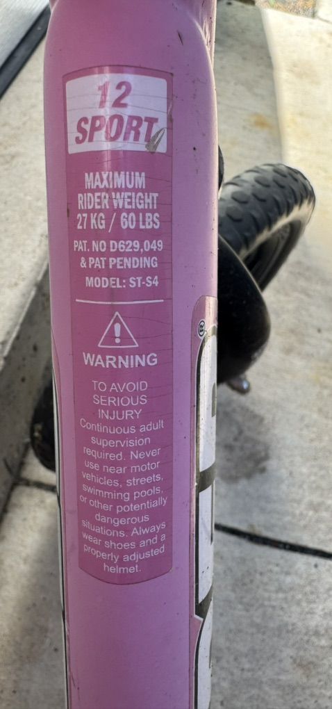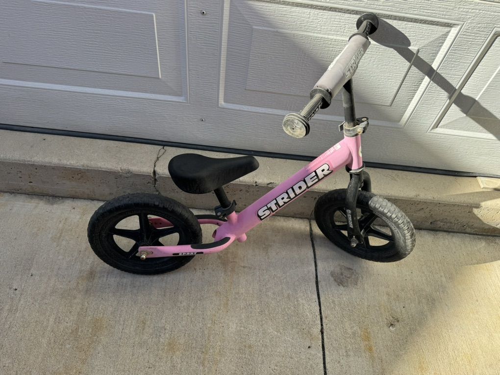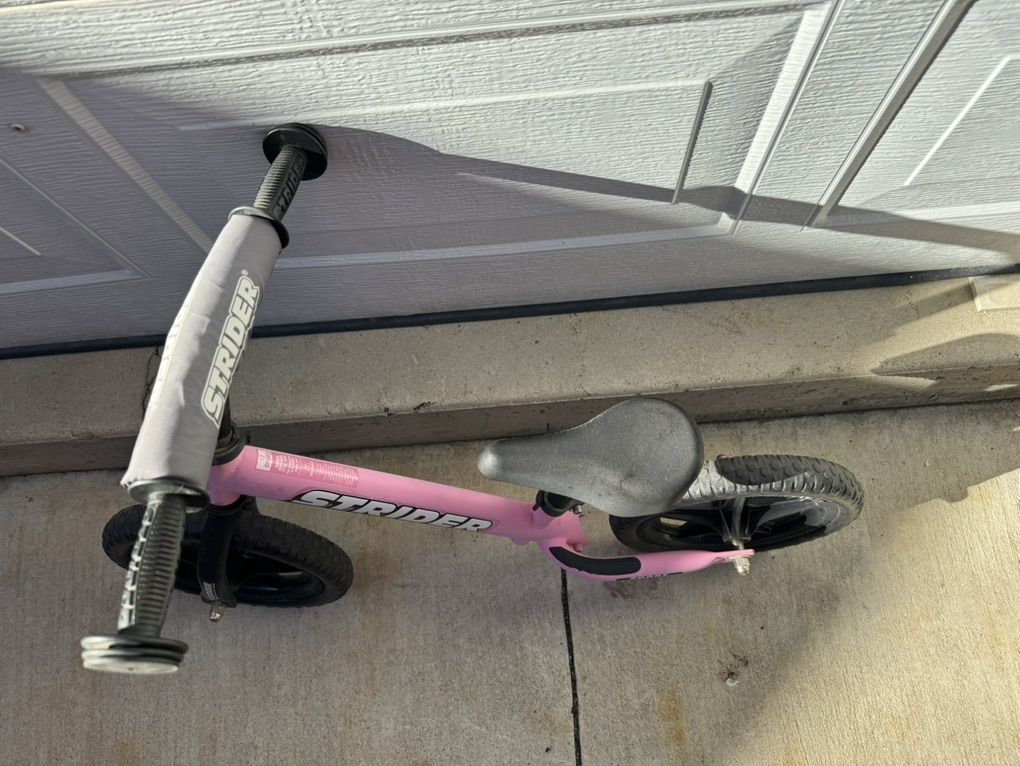 ApplePayUsed Strider 12 balance bike for young kids. It's been a great bike, but our daughter has outgrown it. Still miles of fun left. Text for faster response. $150 new (this one is NOT new) Make an offer. Balance bikes are proven to teach kids to learn to ride faster than training wheels. With a seat height range from 11-17 in. (28-43 cm), the Strider 12 Sport fits children with an inseam of 12-18 in. (31-46 cm). Never flat, no-maintenance, 12 foam rubber tires will ensure safe and steady riding over any terrain The 12 Sport has a lightweight steel frame that weighs in at 6.7 lbs. (3.0 kg). Easy, no stress assembly with all tools included. The seat and handlebar heights adjust to accommodate ages 1 to 4 years. Maximum Rider Weight: 60 lbs. (27 kg).