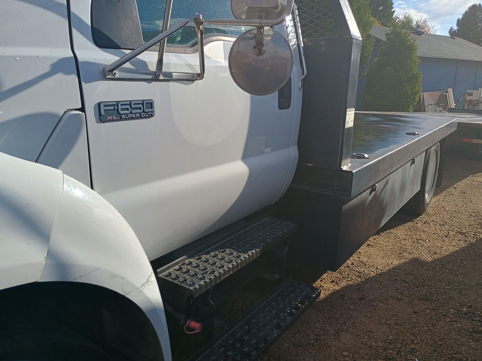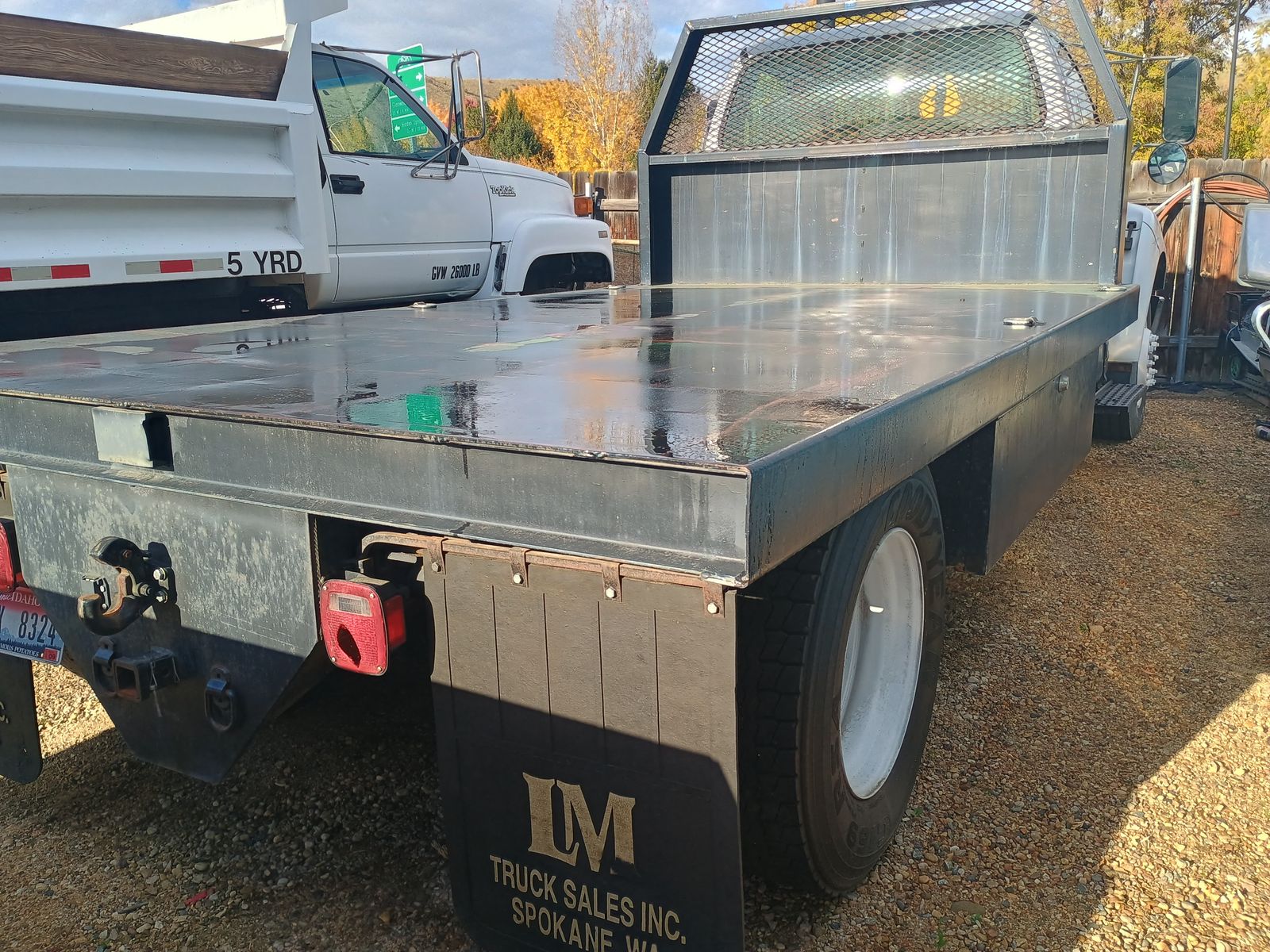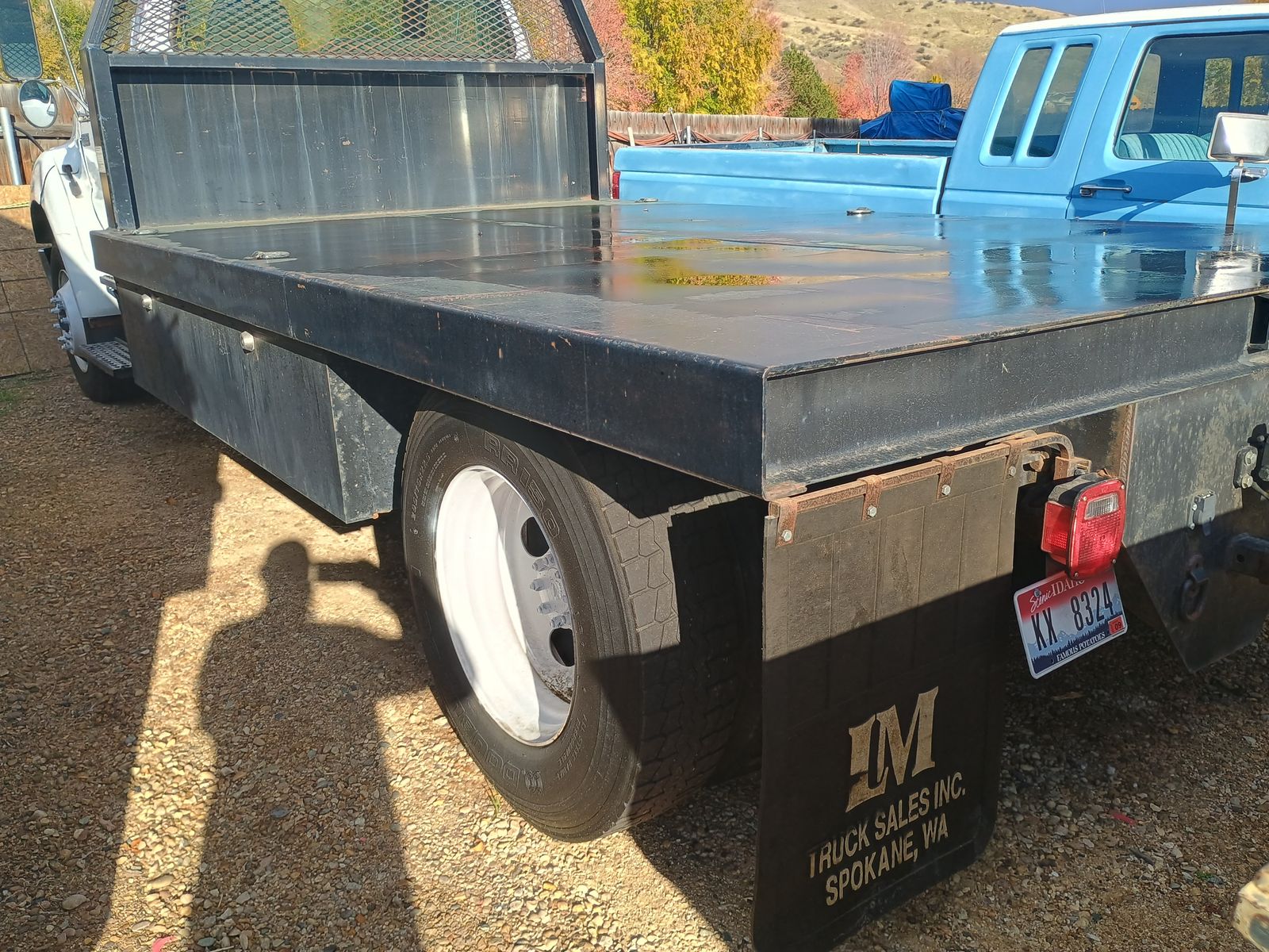 Custom built 14 ft. heavy duty flatbed with 1/4" thick deck, 4" channel every 12", Headache Rack, 2 Large cabinets 6 feet and 8 feet in length can fit 5 gallon buckets upright, There is a 5th wheel ball installed but the lid needs to be cut out. , Brand new front tires, Brand new brakes. I have the receipts.