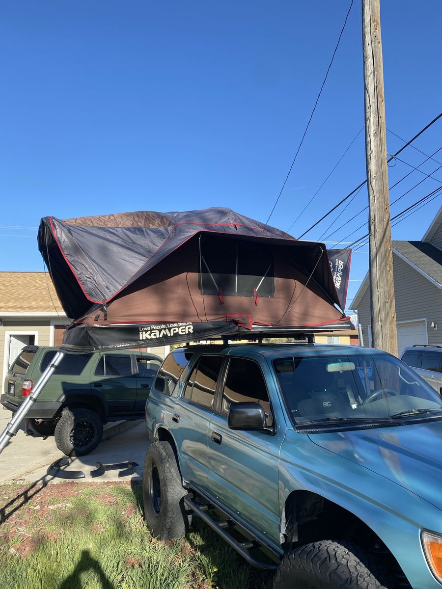This tent has been awesome, it’s seen lots of adventures and still in great shape. Only selling to buy a smaller one (will trade for a two person wedge rtt) sleeps 3 adults comfortably. 4 if you’re all close buddies. Padding is comfortable, stays dry in the rain or snow. Feel free to message me with questions. Smoke and pet free.