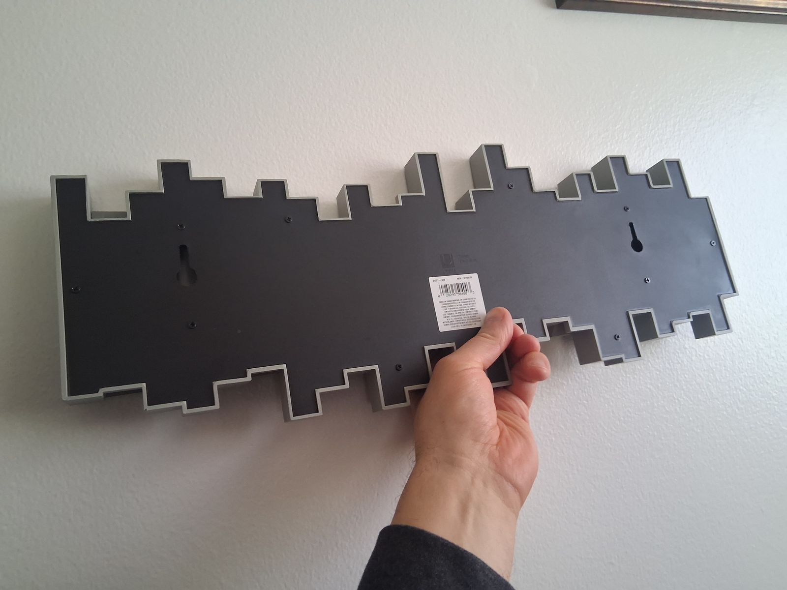 Venmodesign clothing hanging wall mounted rack. 19.5 inches Length by 7 inches Width by 1 inch Depth thickness.
