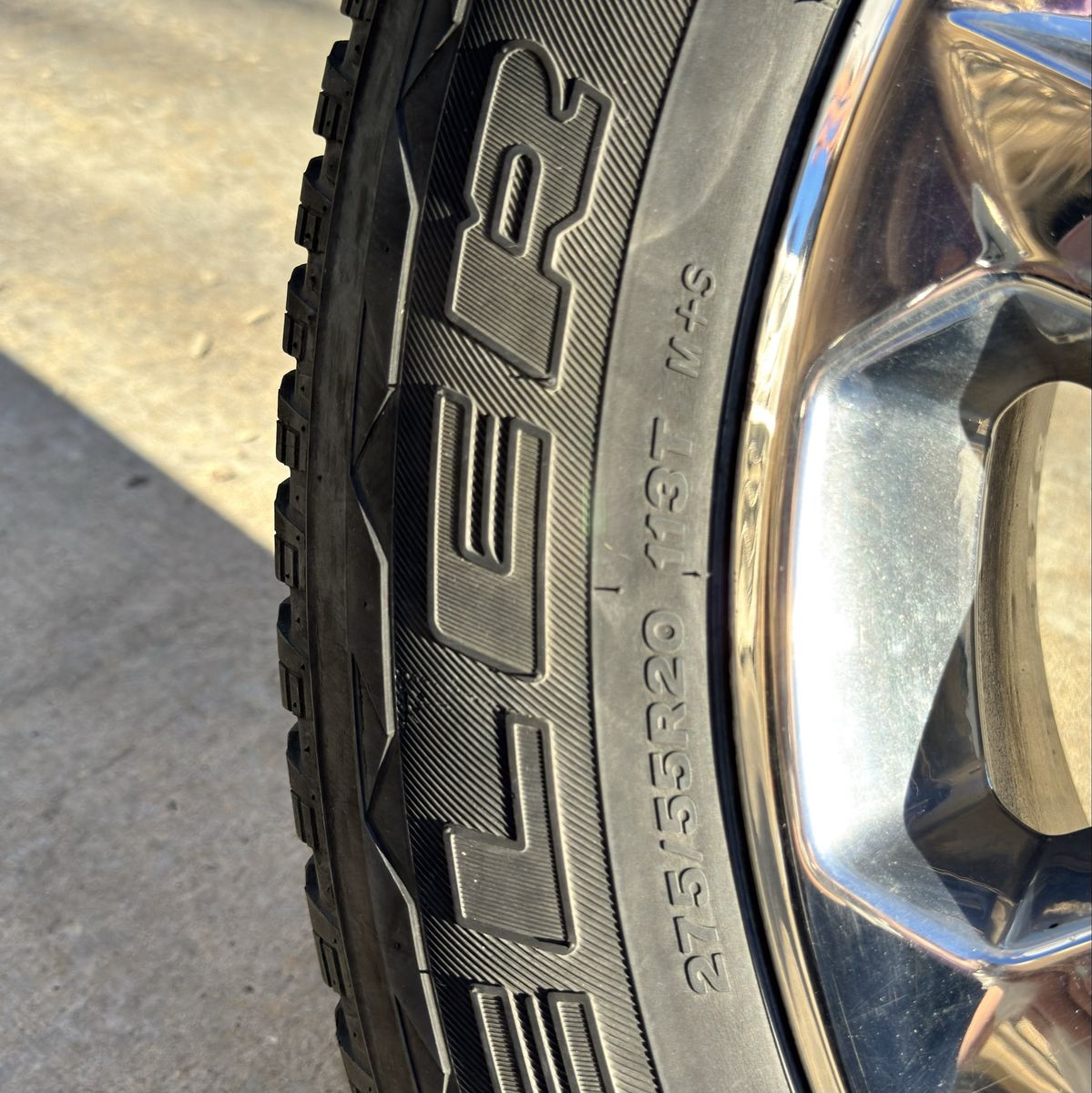 ApplePay4 Tires and wheels off of a 2012 Ford F150. Just purchased some new ones, but these have plenty of life left. Bridgestone Dueler 275/55 R20 also have lug nuts. Asking $400 text is best.