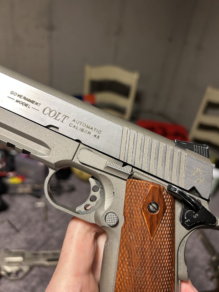 Colt automatic 45 - can’t get the slide back. And the hammer is halfway broken. Takes Co2