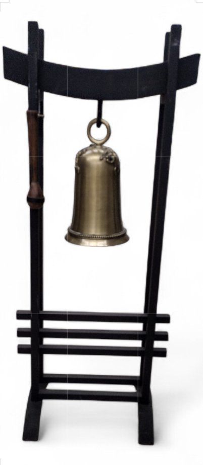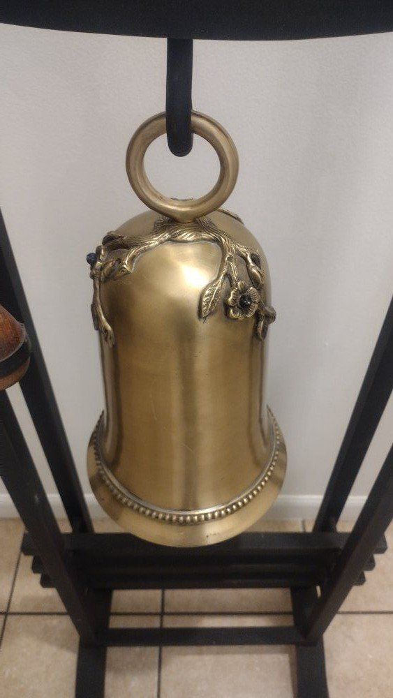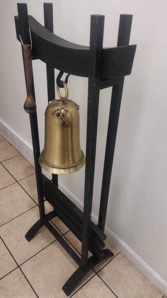 Antique Large Metal 4' foot Pagoda Temple w/ Solid Brass Bell Gong excellent condition
