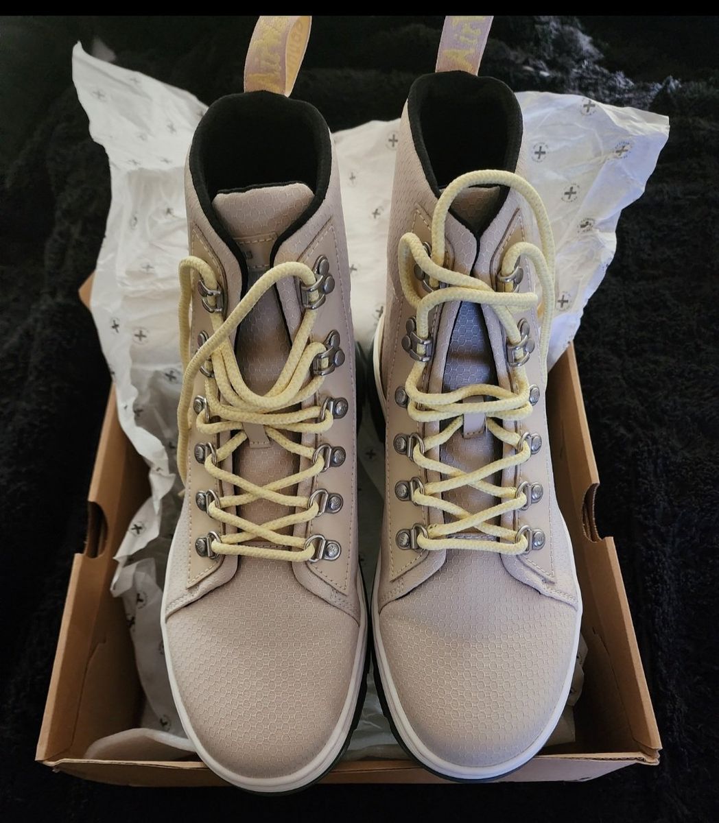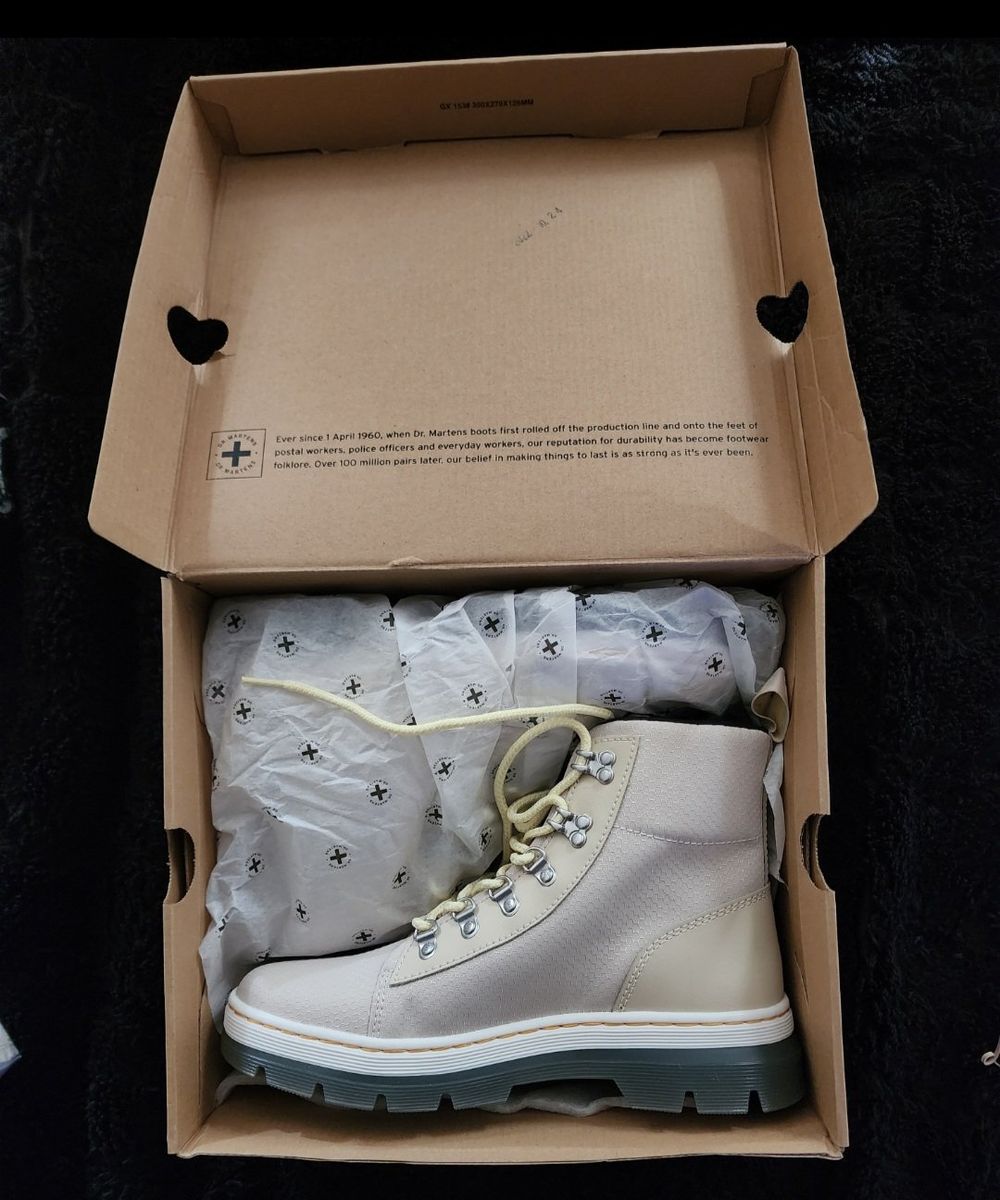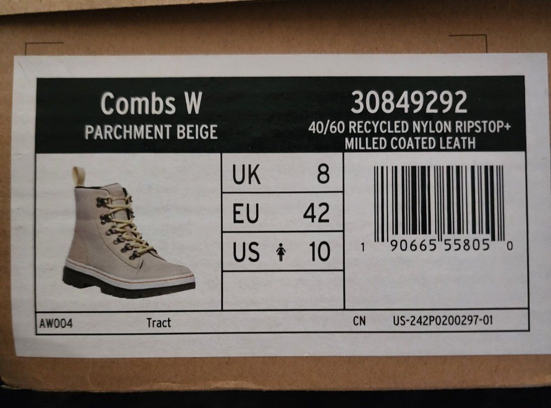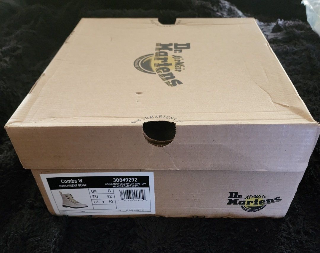 NEW. Dr. Martens womens Combs Parchment Beige color. Bought for a gift so one shoe has been tried on to see if it fits. Return window has past so my lose is your gain. Size: 10 US women Asking: $100 cash or trade only. Trades like Silver/gold/jewelry or show me what you have. Smoke free home but have dogs. Messages/texts are the best way to contact me. Thank you for looking.