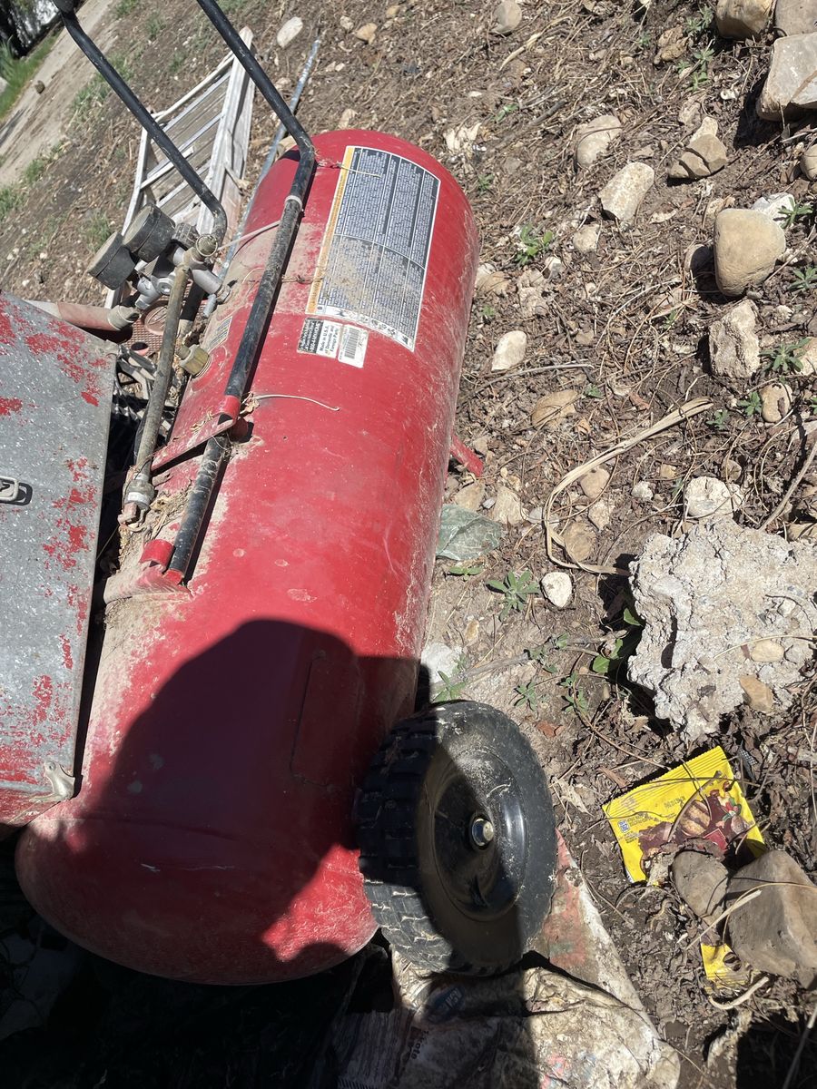 VenmoAir compressor (no hose attachments) and a small cooler of screws.