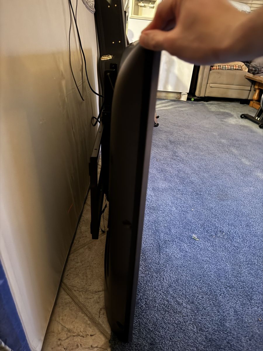 Used this TV only for Teams meeting calls in office. Includes 2 x remote controllers No TV stand, but wall mount is included Slight dent on top