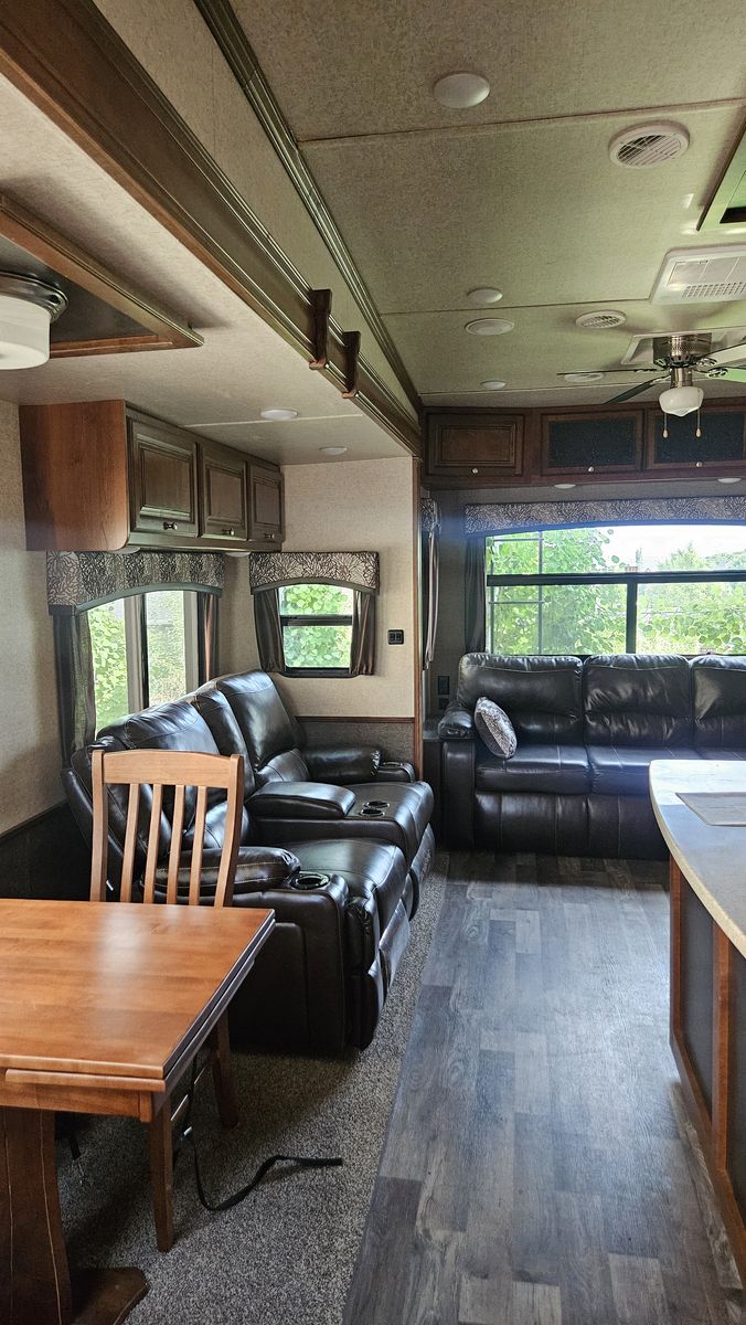 ZelleNeed the extra space with plenty of beds for kids or guests? Or are you just ready to have a luxury home on wheels to get away from the city? Either way, this fantastic fifth wheel trailer has got you covered.