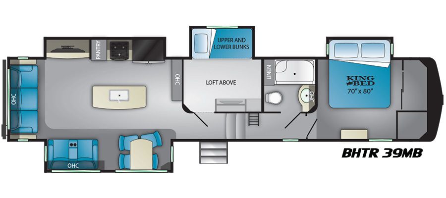The Heartland Bighorn Traveler 39MB (often referred to as a 39 MB) is a luxury, quad-slideout fifth-wheel trailer designed for families and extended living. It is known for its mid-bunkhouse configuration, which provides a dedicated separate room in the center of the unit in addition to a rear living area and front master bedroom.