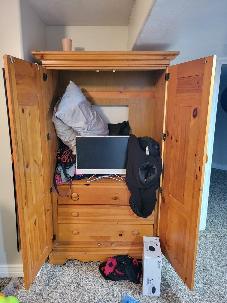 VenmoArmoire also can be used for Tv or clothing closet. 44" wide x22" deep x 76" high