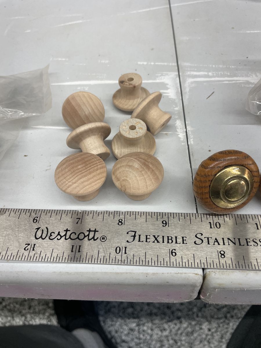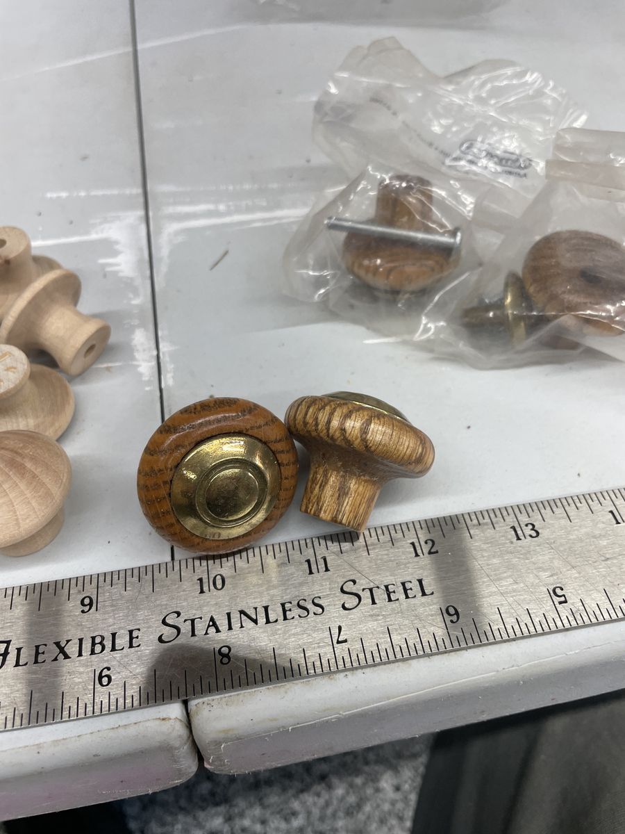 Miscellaneous wood cabinet knobs some with brass accents some without. make me a low offer and come pick them up and check out my other ads.