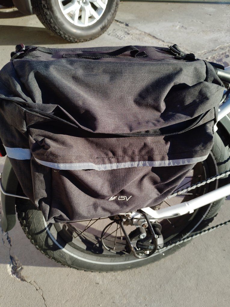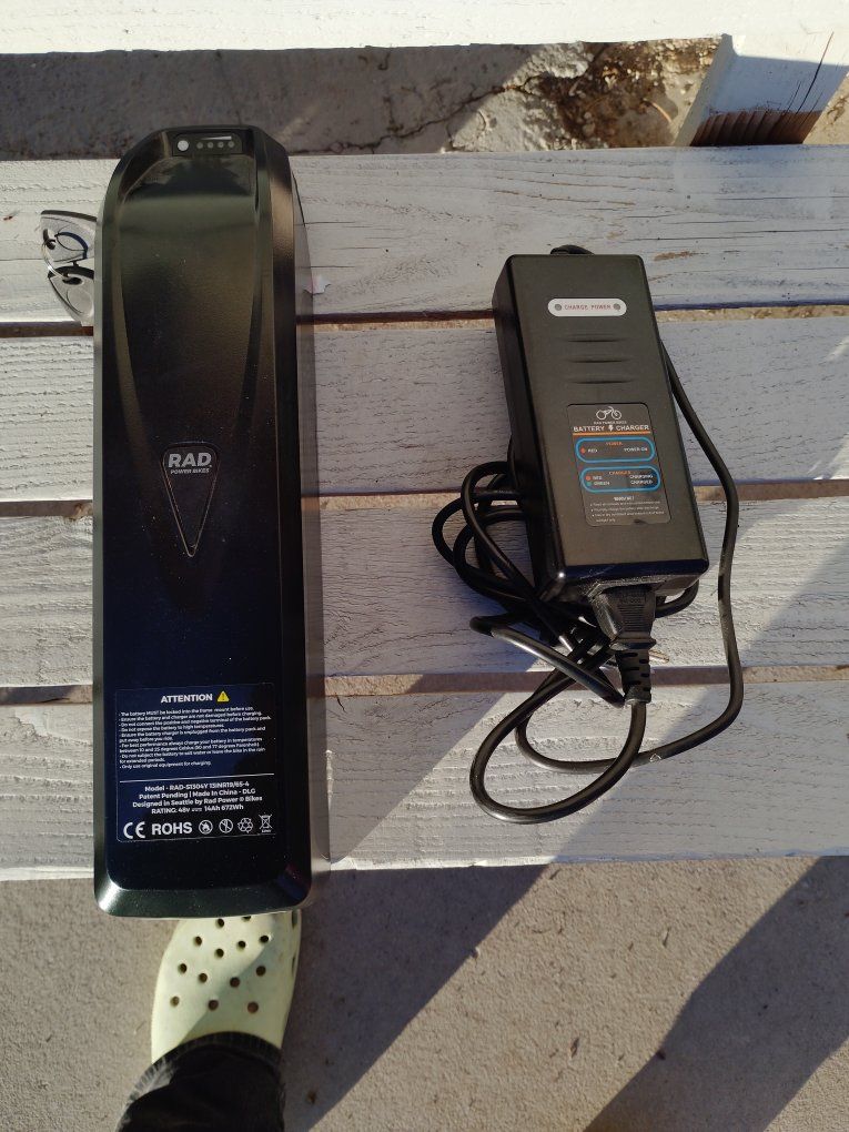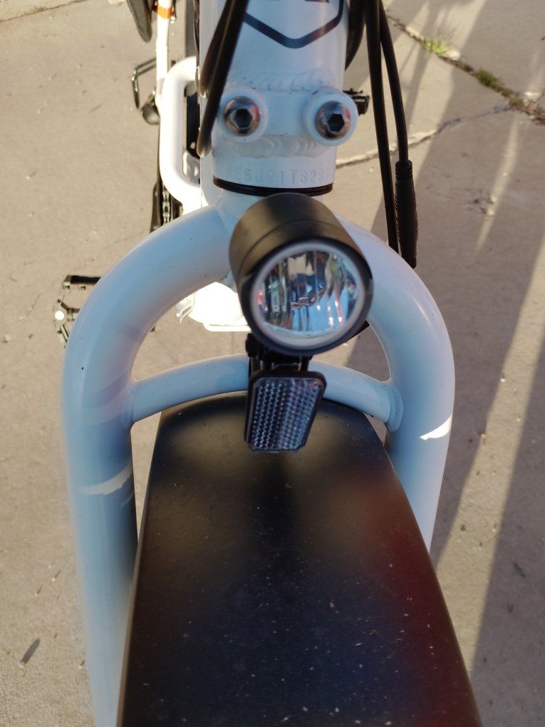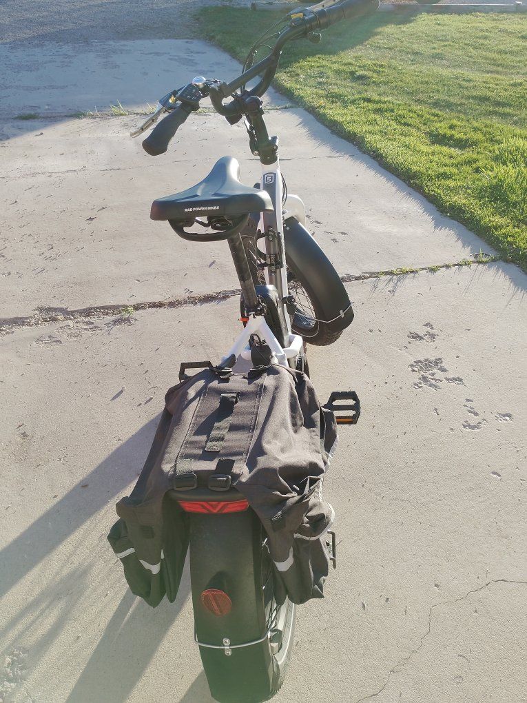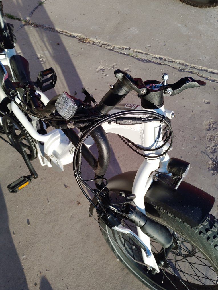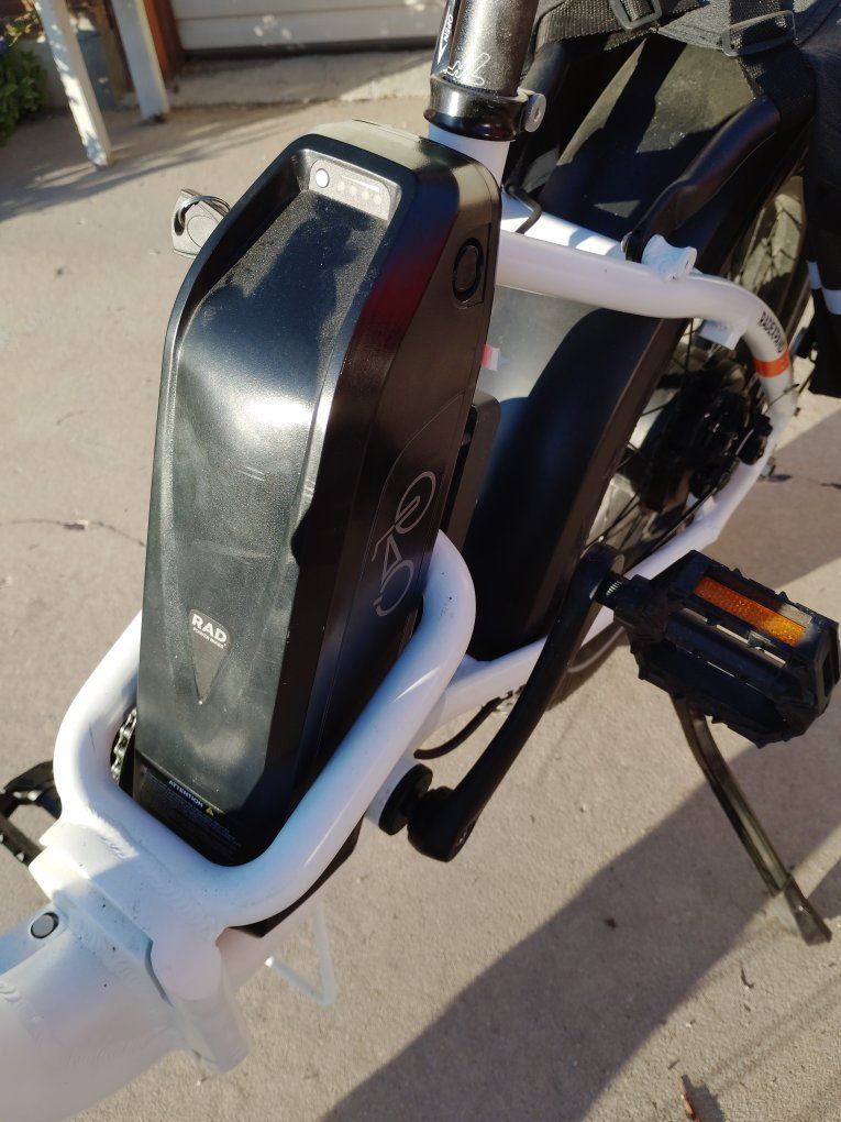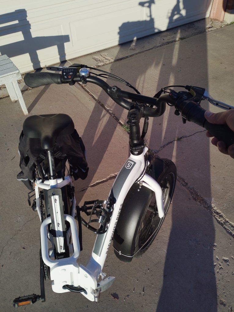 electric folding bike called RADEXPAND 5 This electric bike is practically new only ridden twice for $1,200 this is a steal at MSRP price this is going up to $1,800 plus. My mother had knee surgery on both knees and no longer can ride this. everything that is depicted in the pictures are accurate comes with saddlebag front headlights rear backlight, gear shift smooth no skip, tire treads are practically new, paint is excellent condition no dents or scratches. The battery charger cord comes with it and two sets of keys The battery charges at full capacity and is an excellent condition. comes with a little compass and and a little bell. This bike is a folding bike as shown can fit in any car for transportation!
