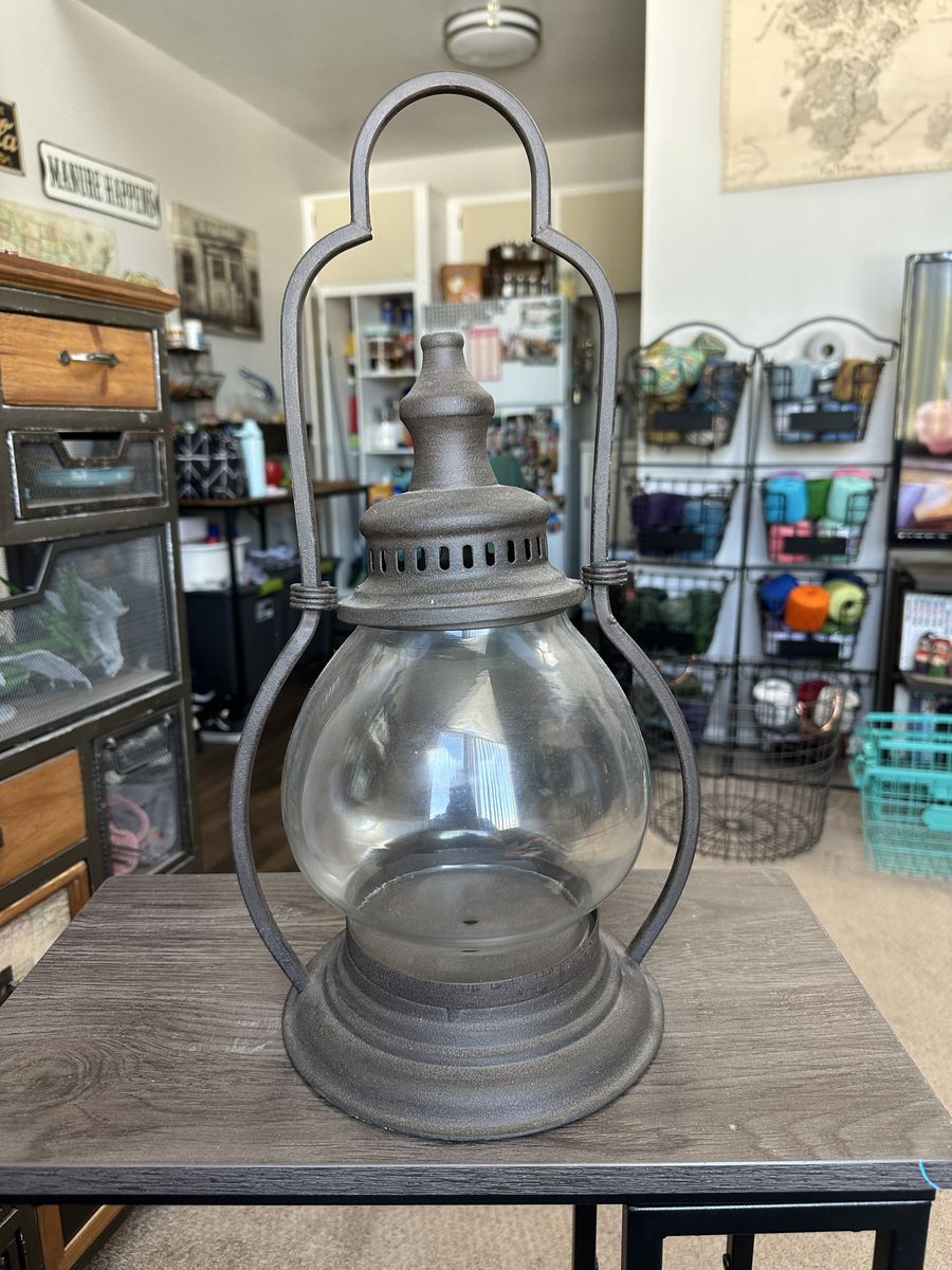 The top piece lifts up so you can remove the glass and put in a candle. Cash or Venmo please.