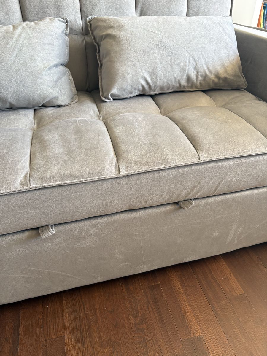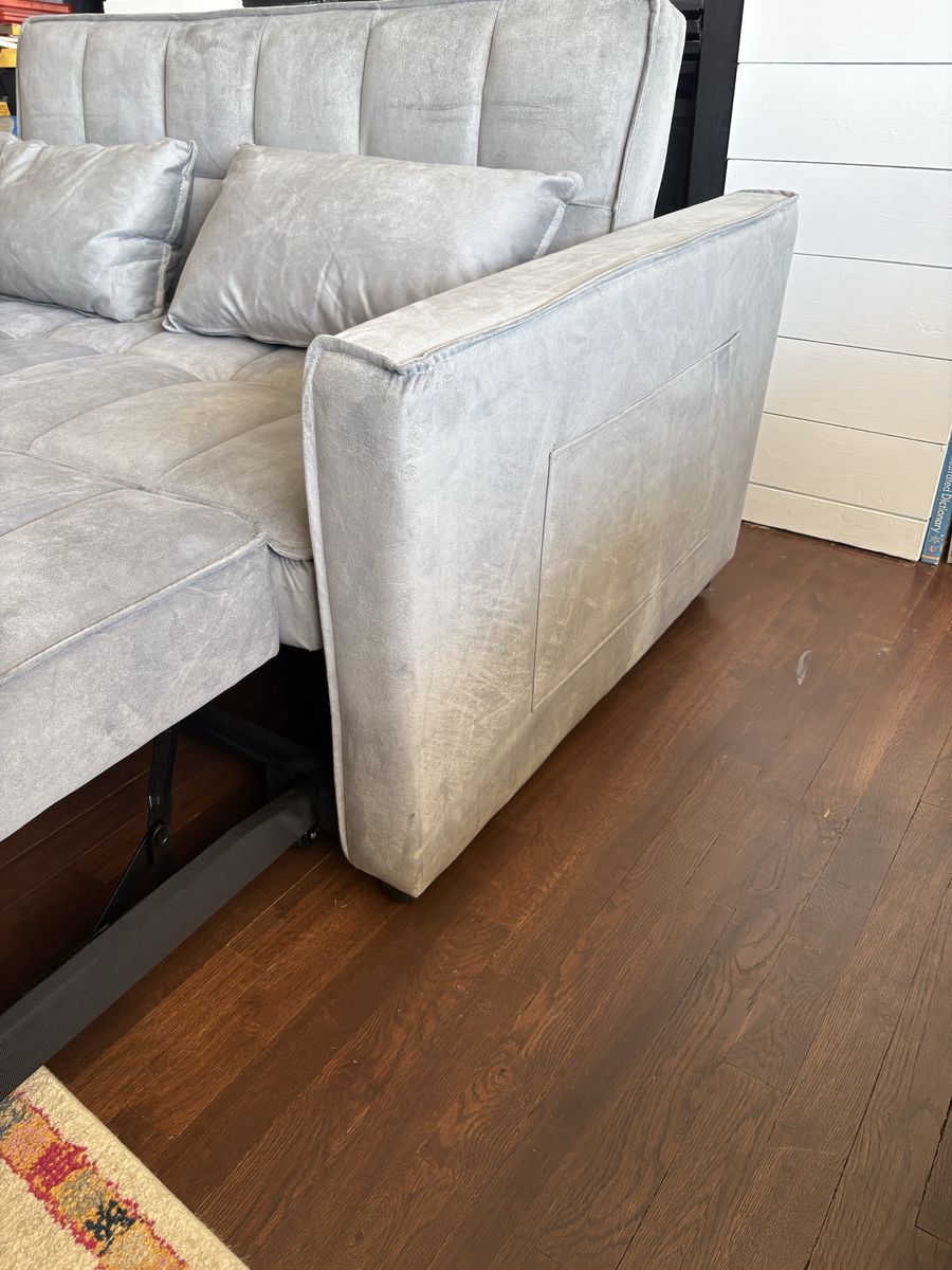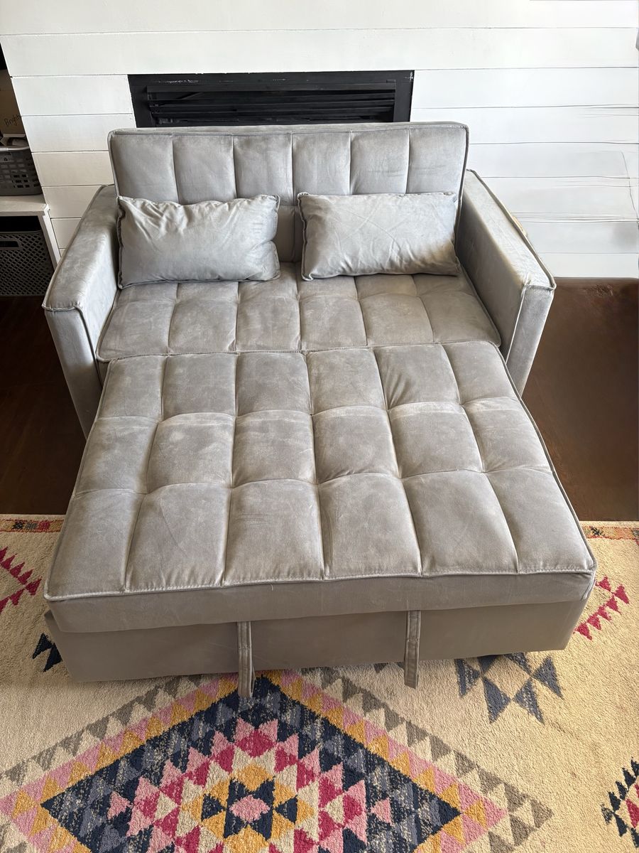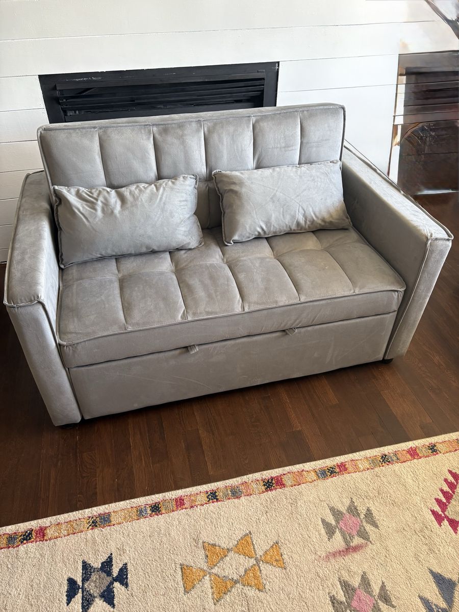 Brand new convertible velvet sofa bed. Never been used. Just talent out of box to take pics.