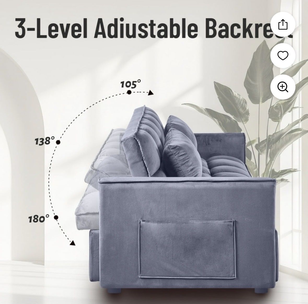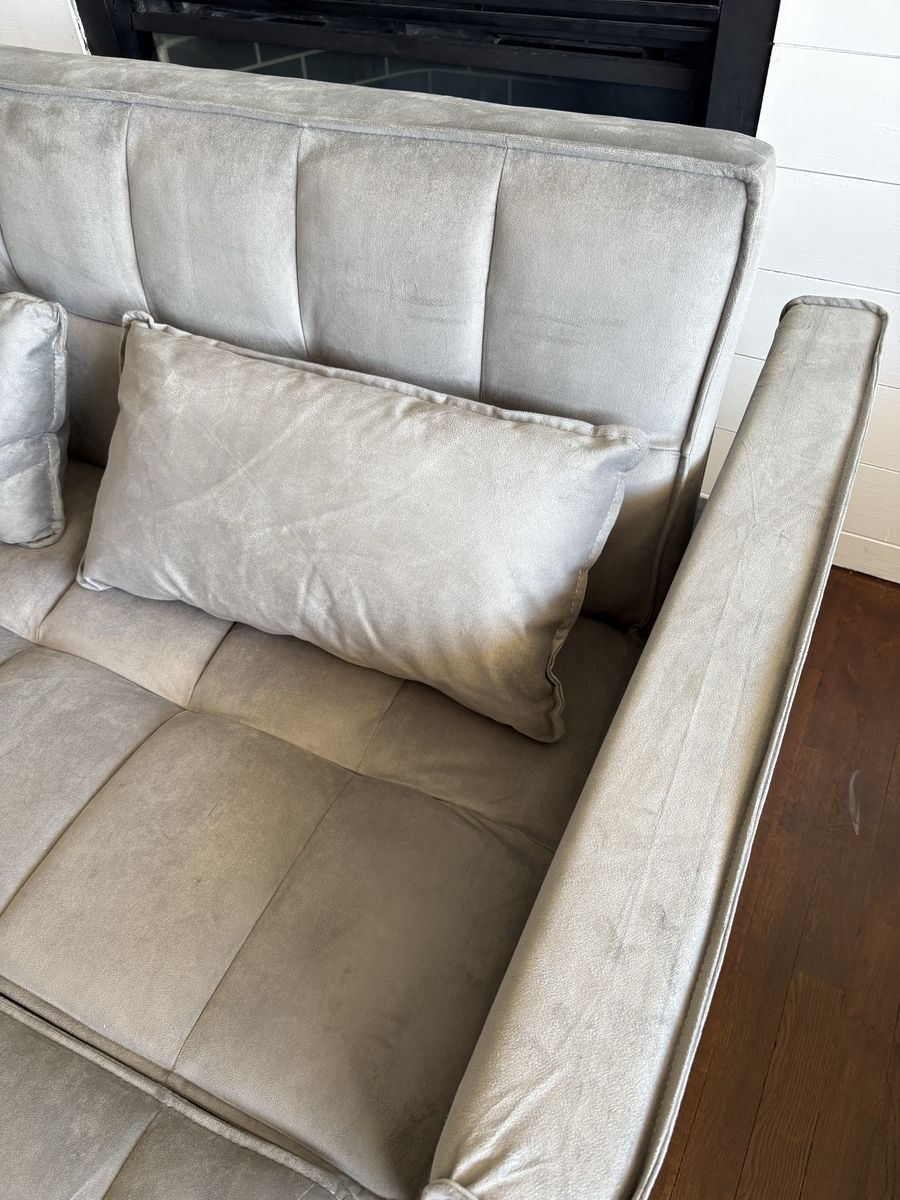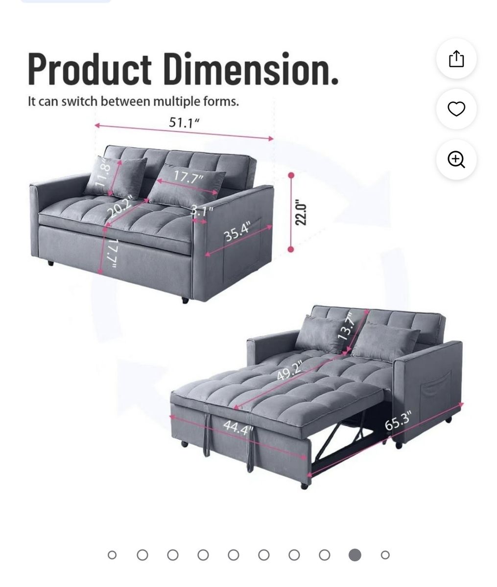 Brand new convertible velvet sofa bed. Never been used. Just talent out of box to take pics.