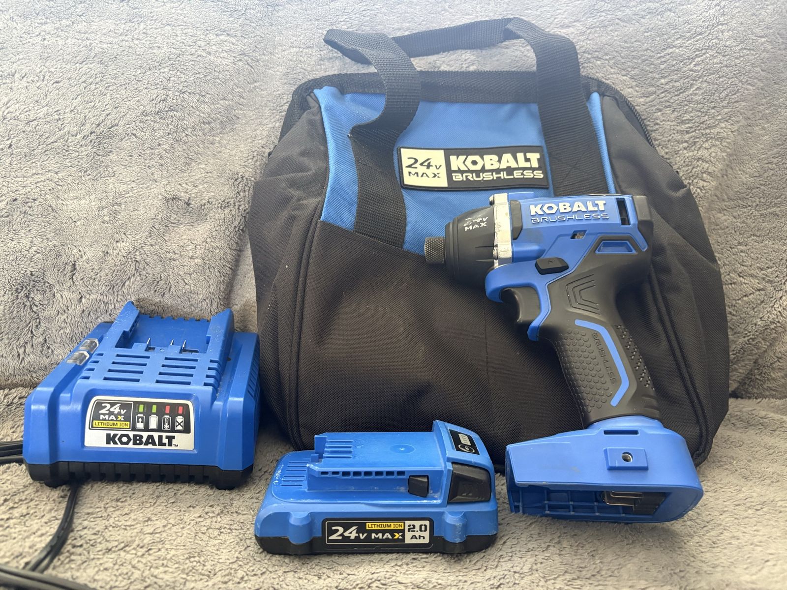 Kobalt 24v 1/4” Brushless Cordless Impact Driver (Battery, Charger, and Soft Case Included)(One 2.0 AH Battery) $159.00