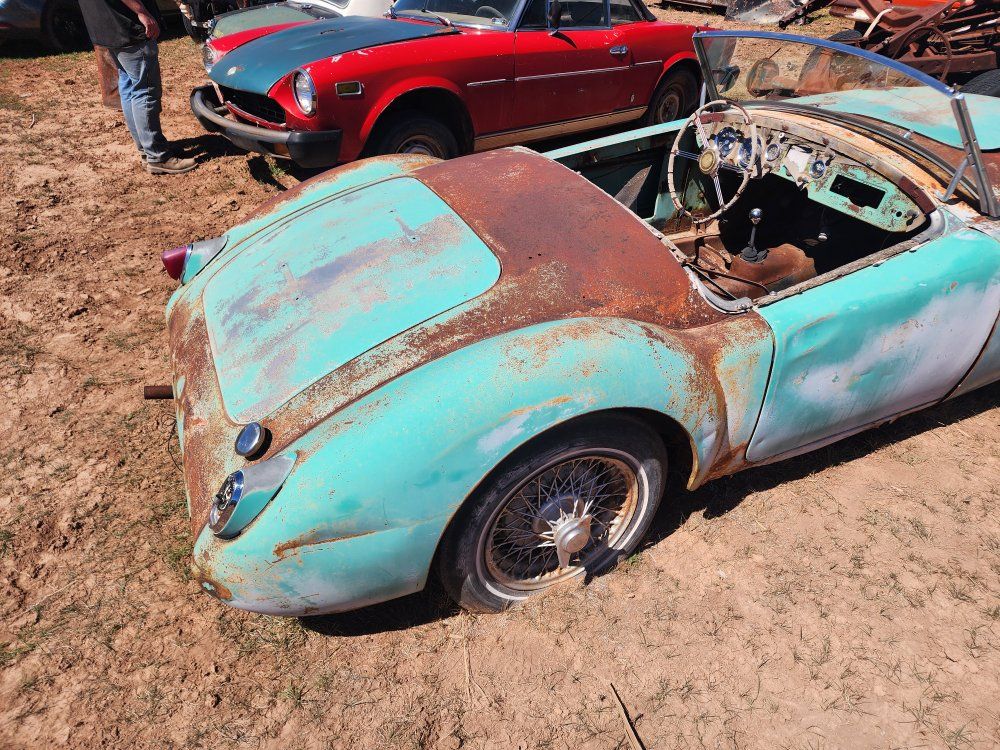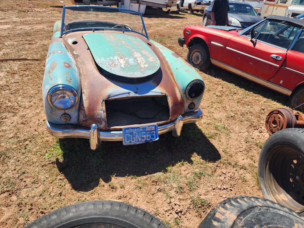 1956 MGA Roadster the real thing. Has a title. Southern Utah/Nevada car with minimal rust. comes with a ton of extra parts including a second chassis engine and trans extra wheels. Has windshield, glass, top bows, grill, bumpers etc. please check out all the photos.