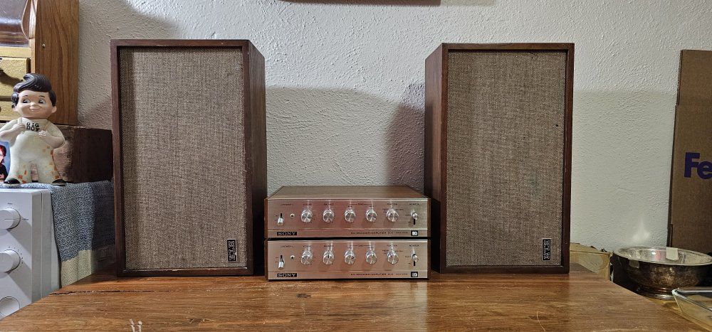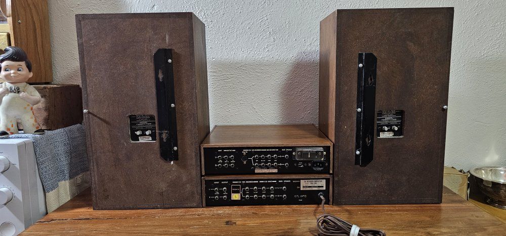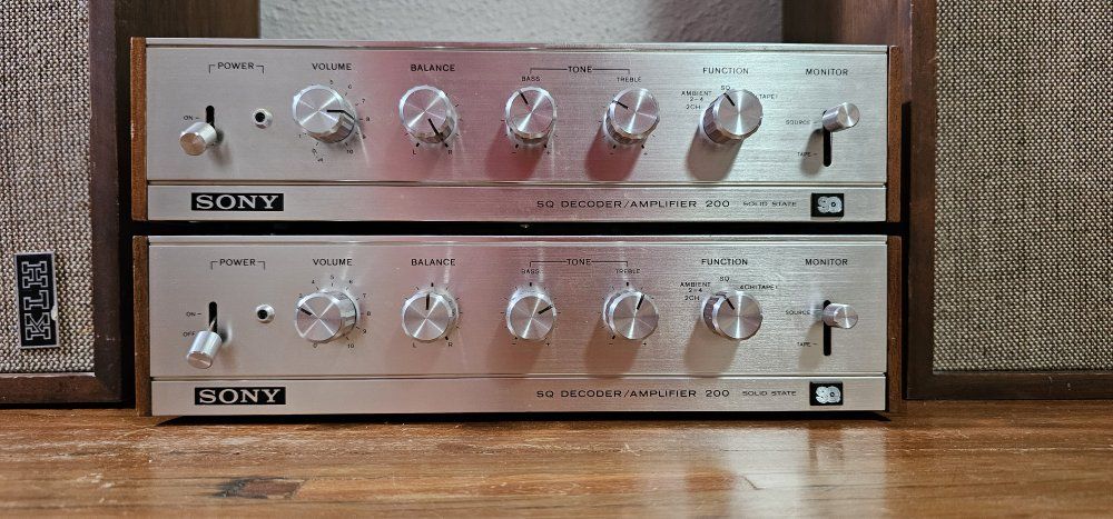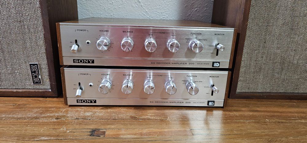 ZelleSony SQA-200 Quadraphonic Decoder / Amplifier (1970s) A beautiful relic from the brief, ambitious era when audio companies tried to surround you before surround sound was even a thing. This is the Sony SQA-200 — part of the original quadraphonic movement. Designed to decode SQ records and power rear channels, it turns a standard stereo setup into a 4-speaker listening experience the way engineers imagined it 50 years ago. I have two available, both in matching vintage condition with that warm brushed aluminum face and walnut cabinet that makes mid-century hi-fi so addictive. These aren’t just components — they’re conversation pieces. The kind of gear that makes people stop mid-sentence and ask, “what is that?” Perfect for: Vintage hi-fi collectors Quadraphonic enthusiasts Studio decor or listening room builds Anyone tired of black plastic boxes with no soul? My vintage audio gear is stacking up faster than I can sell it. I'm selling the bundle buy one get one free on the decoder and throwing in the KLH model 22s as a nice gift. Pick up Yalecrest Salt Lake City