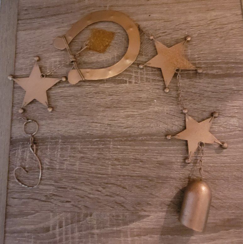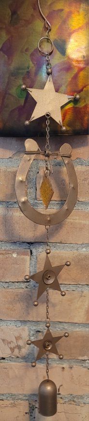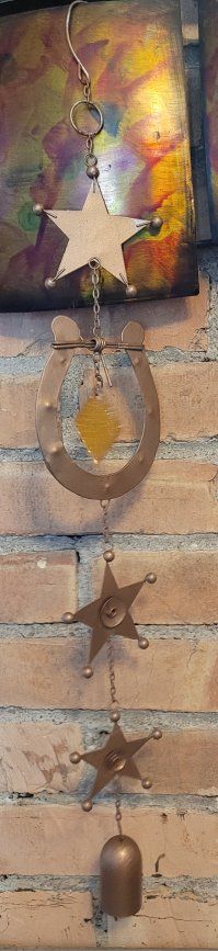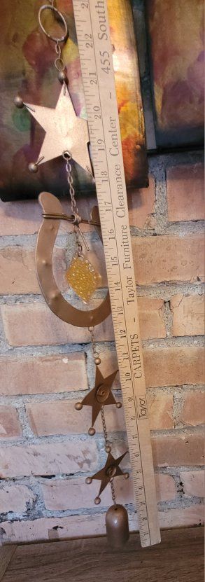 Outdoor Metal Horseshoe & Stars Wind Chime Hanging Western Art 21”