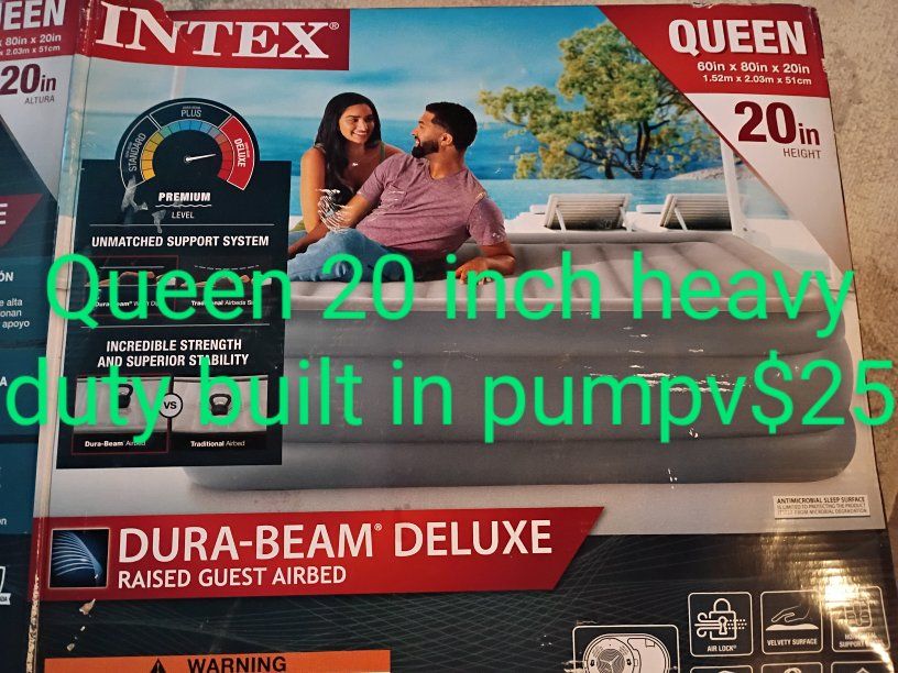 for sale queen air mattress 12 inch $20 still in box have two 24inch built in pumps 12 inch comes with pump plus a toddler air travel mattress cash only located in Ogden