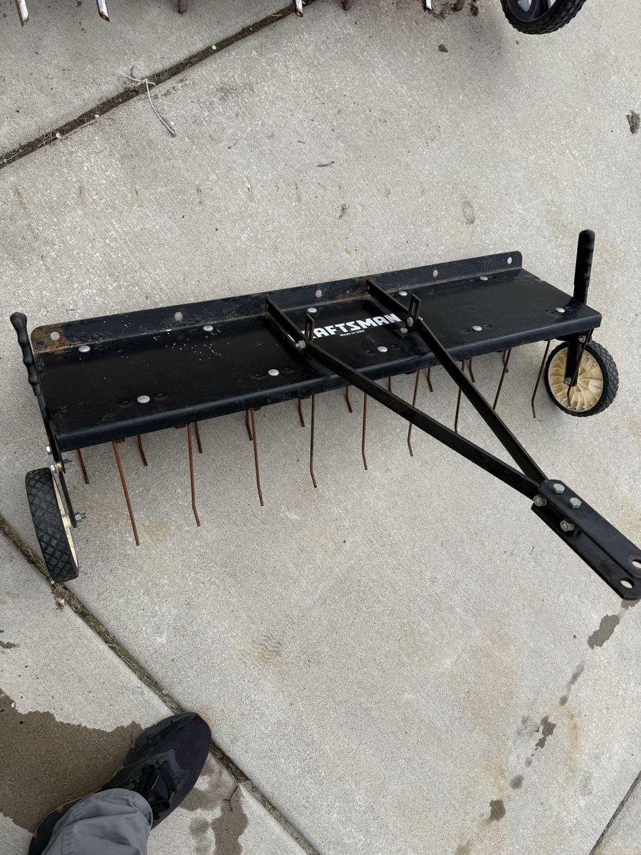 Pull behind Dethatcher for a riding lawnmower and ATV