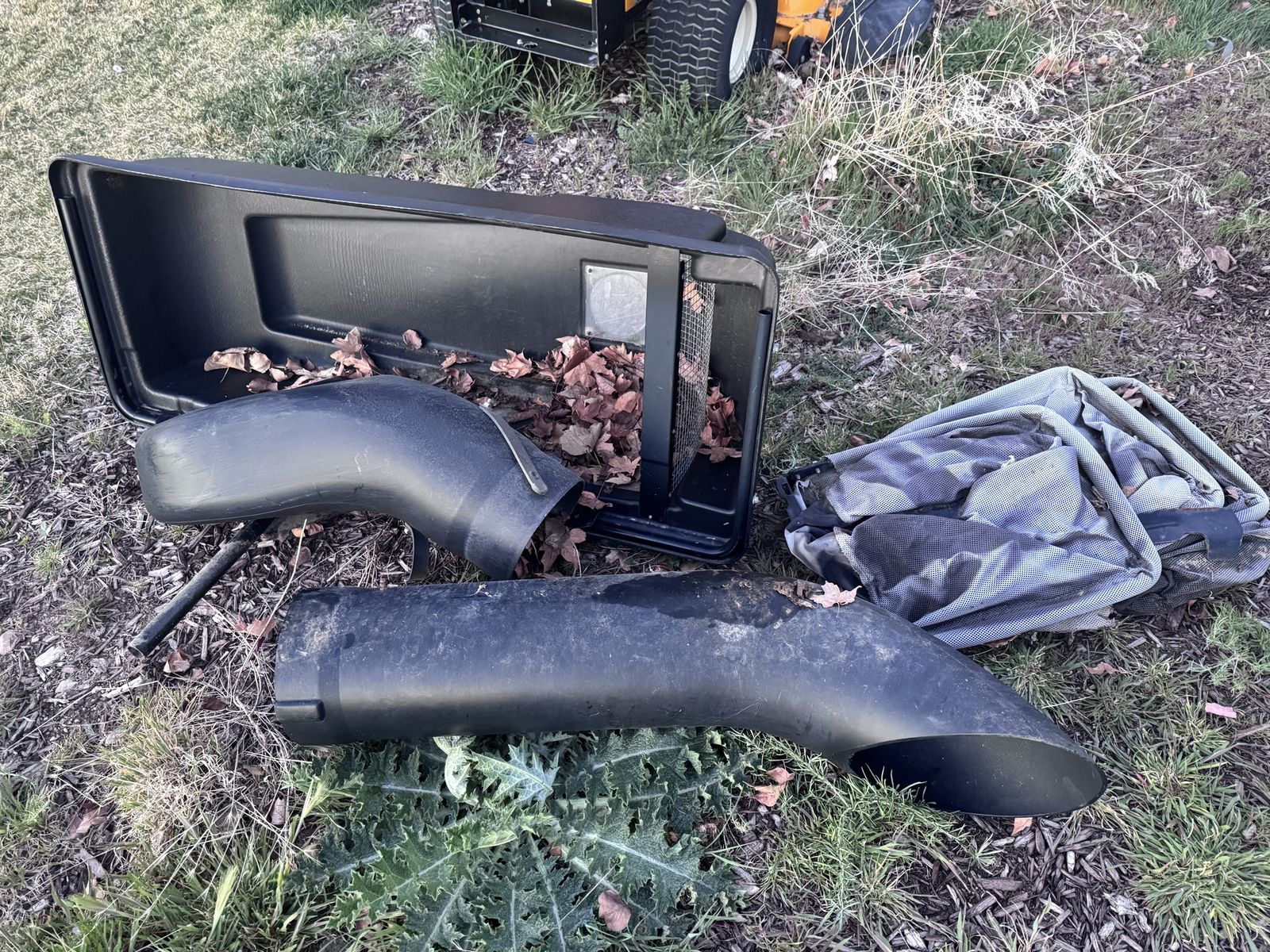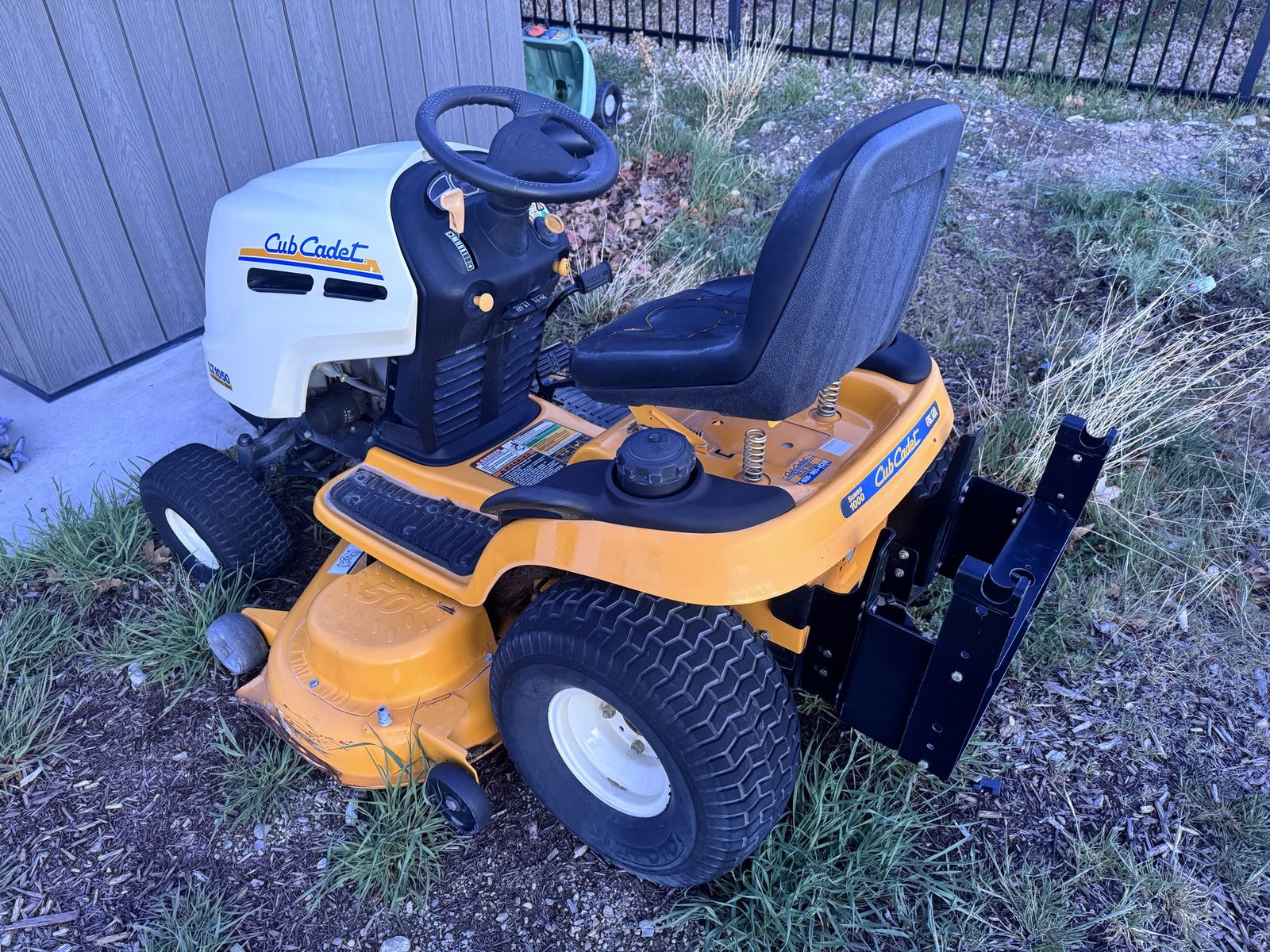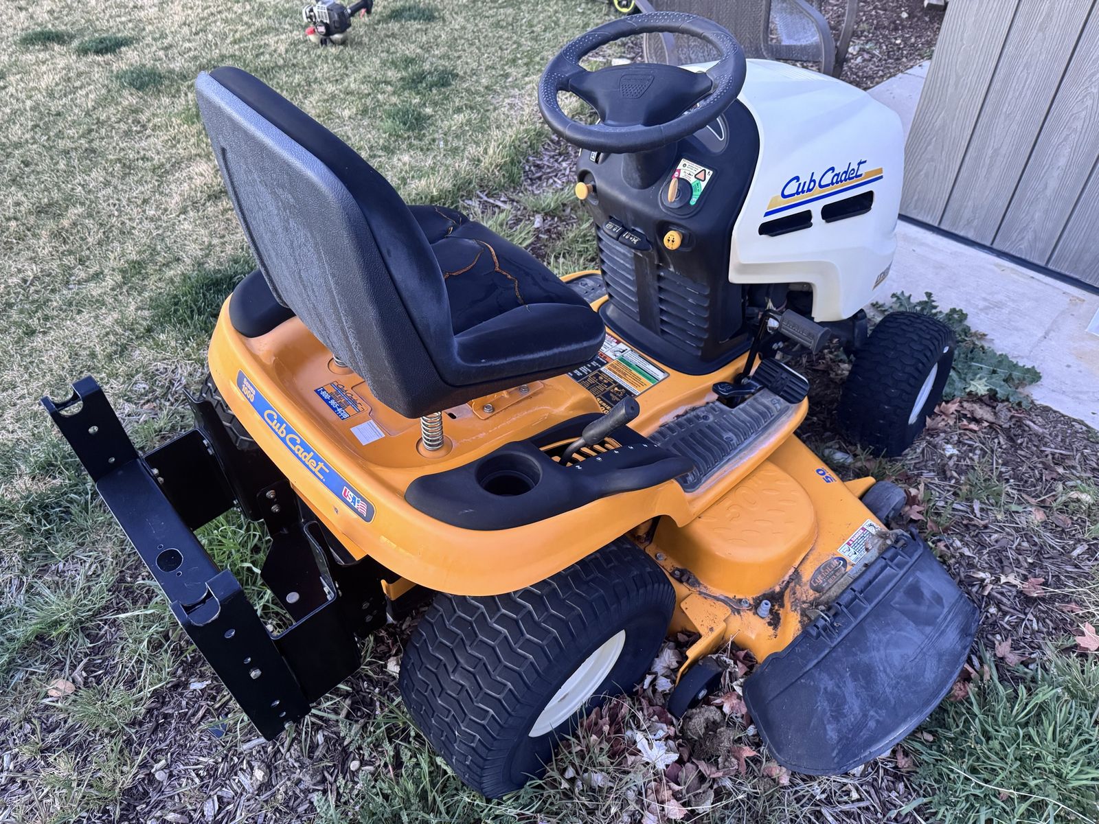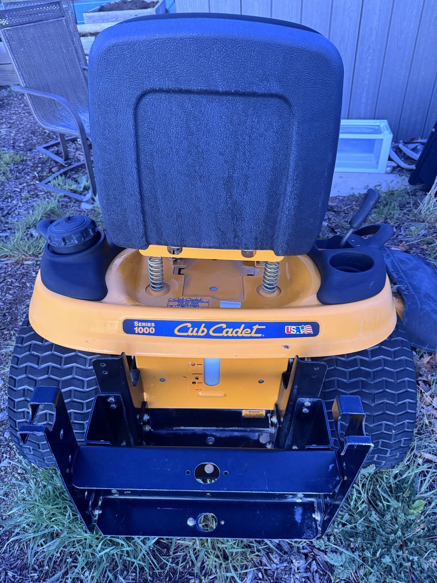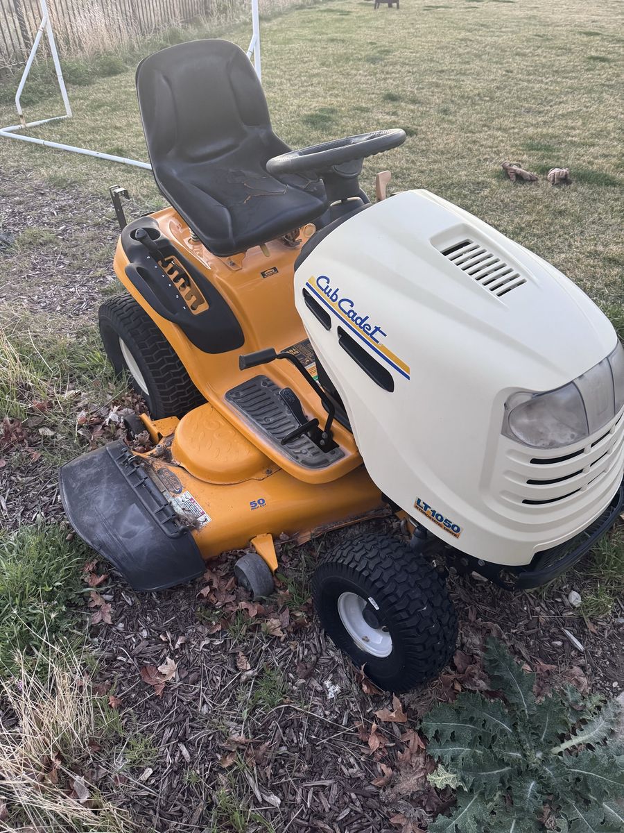 VenmoCub Cadet LT1050 riding lawn mower with 50-inch cutting deck and 26hp Kohler engine. Hydrostatic transmission. Series 1000. When I last ran it (2 years ago), the engine started right up and ran well. The issue is that engaging the mower blades would kill the engine — likely a PTO switch or safety interlock issue, which is a common and relatively cheap fix. I never got around to it. Since it’s been sitting for two years, it has some flat tires and a dead battery. Cosmetically it’s in decent shape — normal wear, seat has a small tear. Includes bagger attachment with chute and collection bag, plus rear hitch bracket. Great project for someone handy or good for parts. Engine alone is worth good money. Cash only. You haul. No delivery.