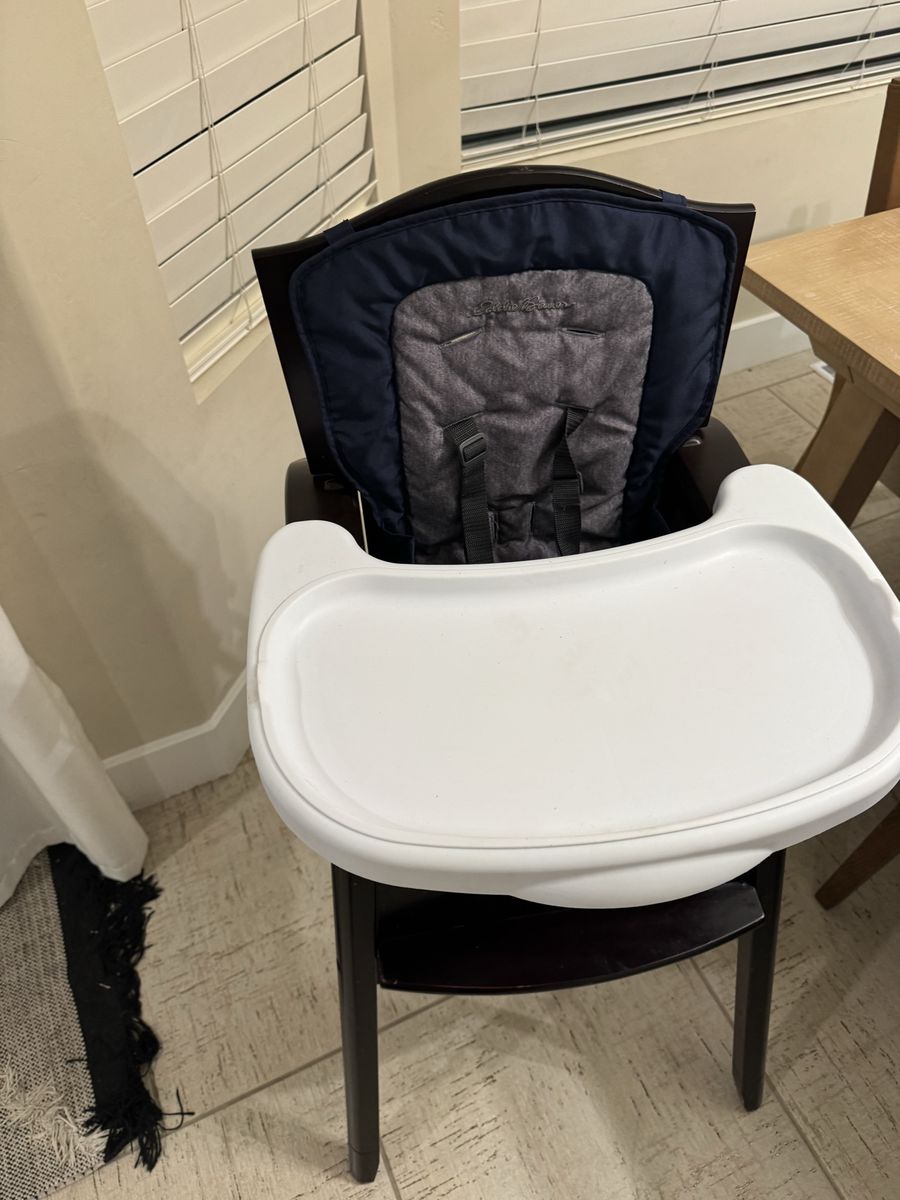VenmoEddie Bauer High Chair for sale. We’ve loved this high chair! It’s structurally sound, a nice piece of furniture. Back reclines to three positions. Has two different inserts to use, one we never touched. A few scratches on the legs (pictured), but otherwise in amazing condition. Pickup in Lehi, near Skyridge High School.