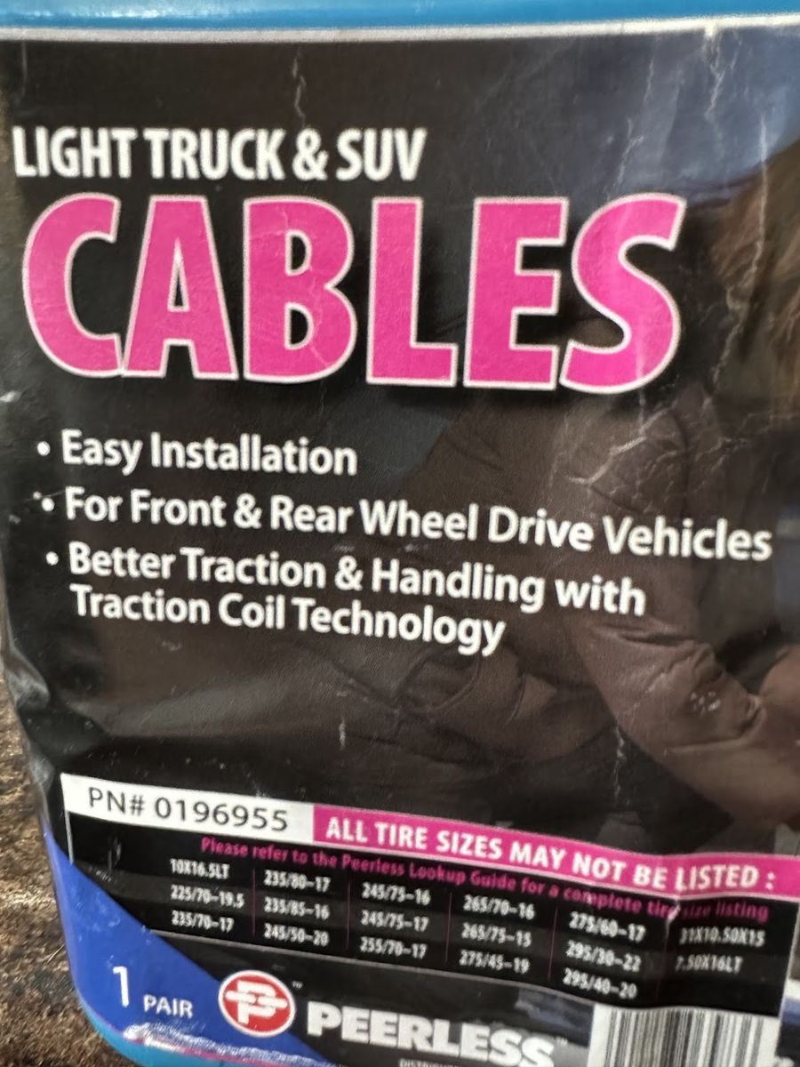 Refer to the Peerless Lookup Guide for a complete tire size listing.