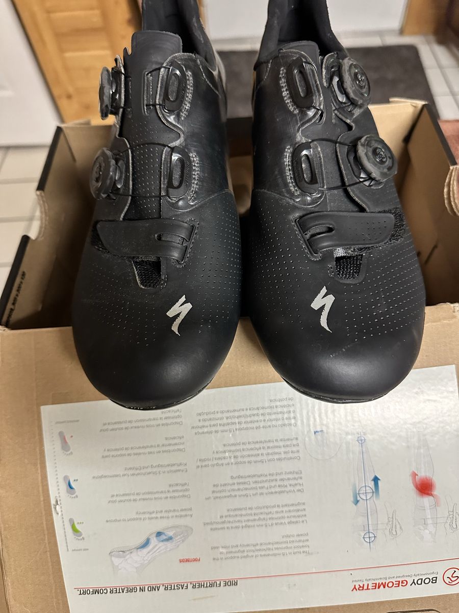Zelle10.5-11 U.S, depends on your fit. I LOVE these shoes and when I bought them had to size up and couldn’t return. Barely used. So they’ve sat in box and are now yours. I still ride the 6. Best gen shoe iykyk. Specialized paid $300 Asking $100