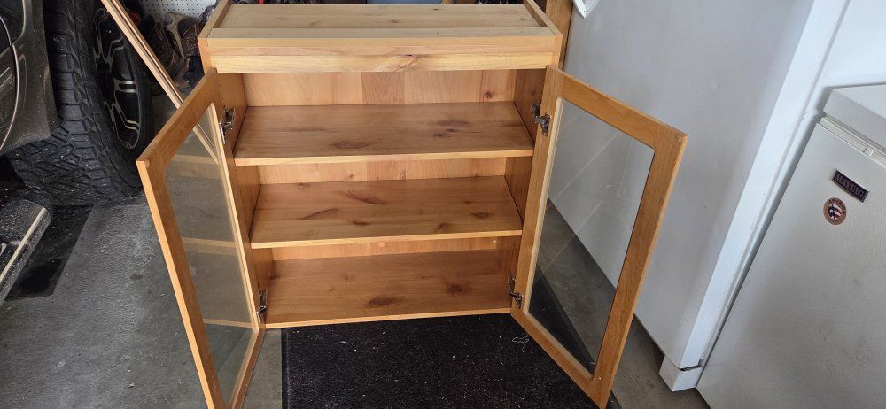 Venmojust pulled this cabinet out of our nook. it is overtaking in great shape. the back wall panel has some scuffs where some staples came through. otherwise perfect shape. obo.