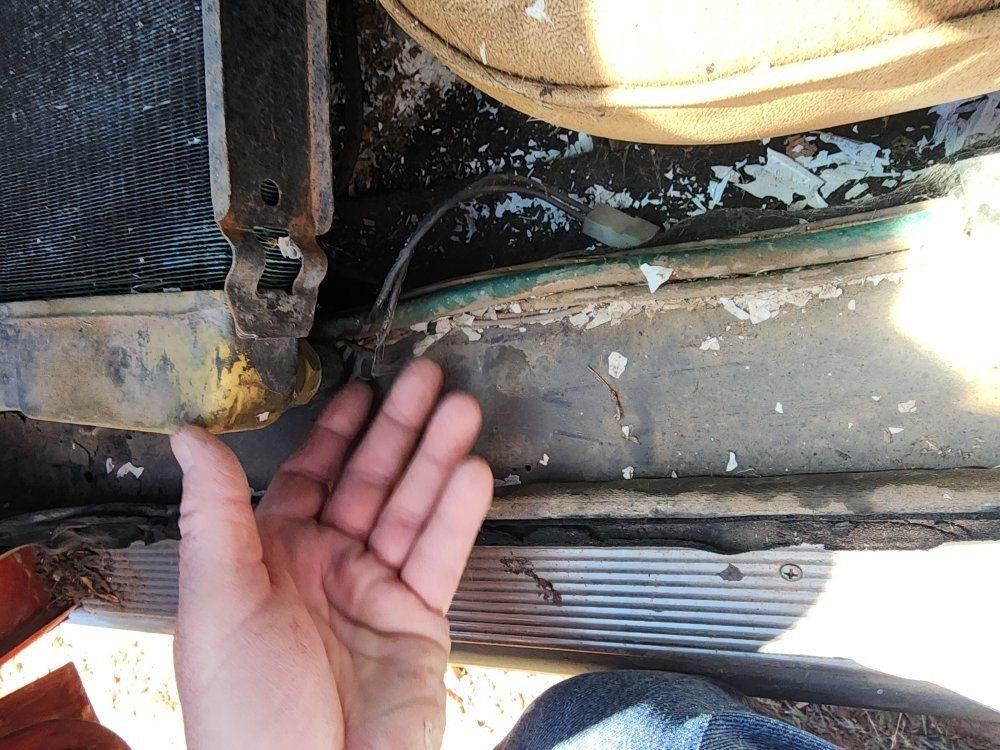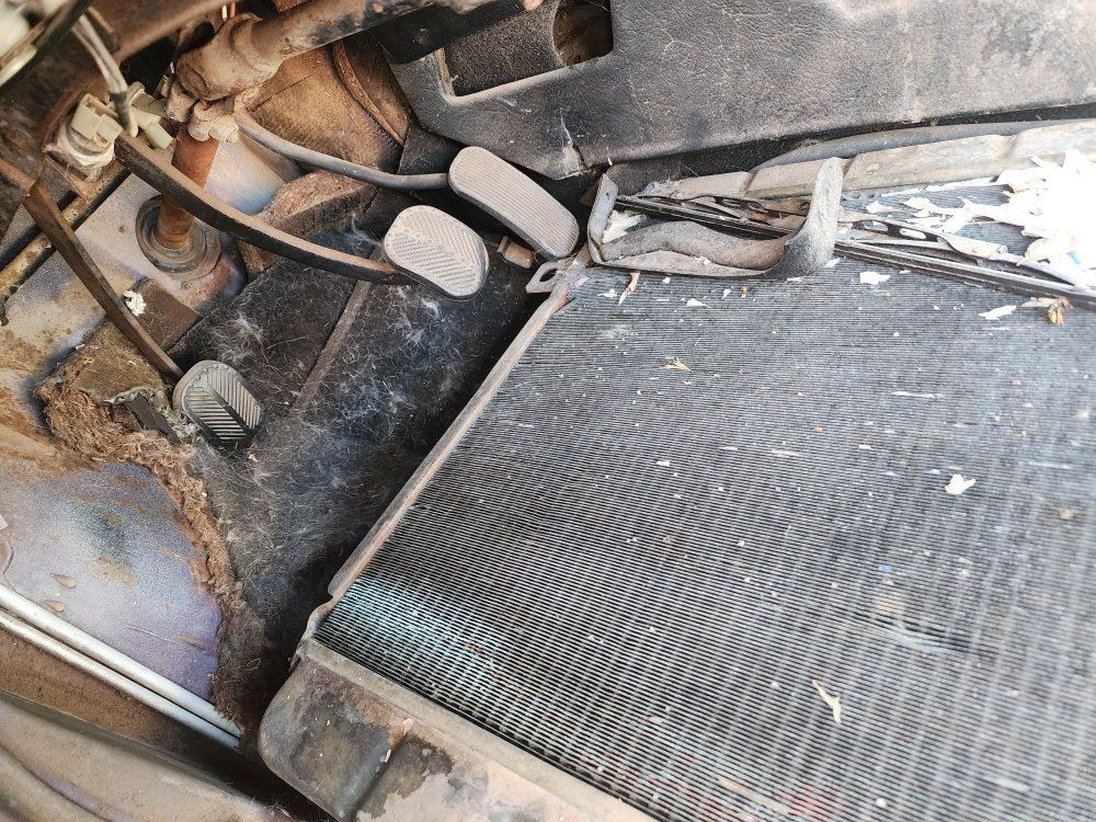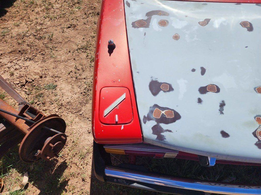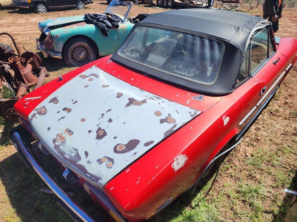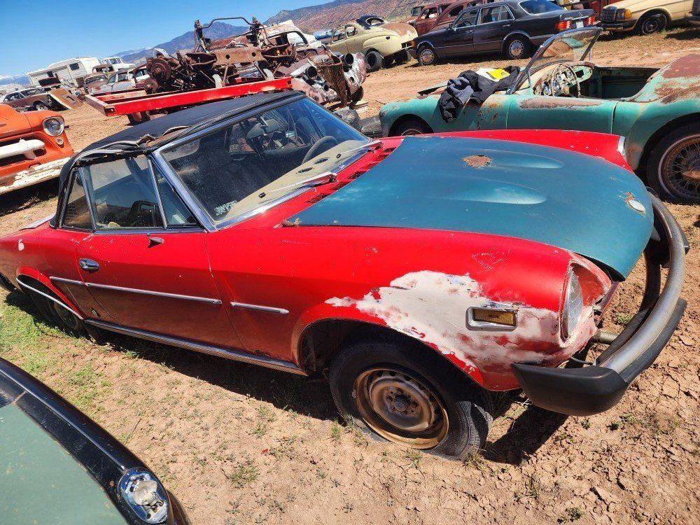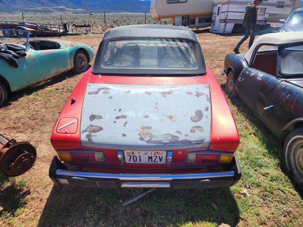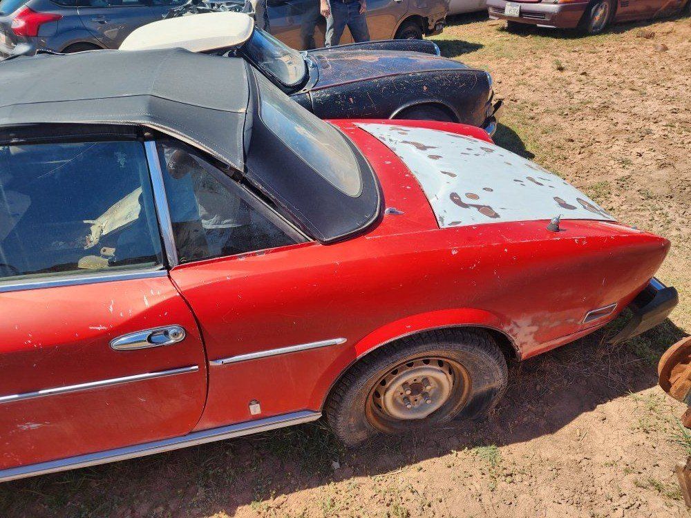 1978 Fiat convertible. all glass is good. no engine but transmission and radiator are there. Top bows good. has title. Has some rust but floors seem solid.