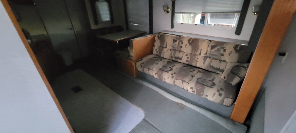 Has some water damage, but super cheap. Has built in generator and fuel tank. Needs some work, but for the right person you can make many memories in this trailer.