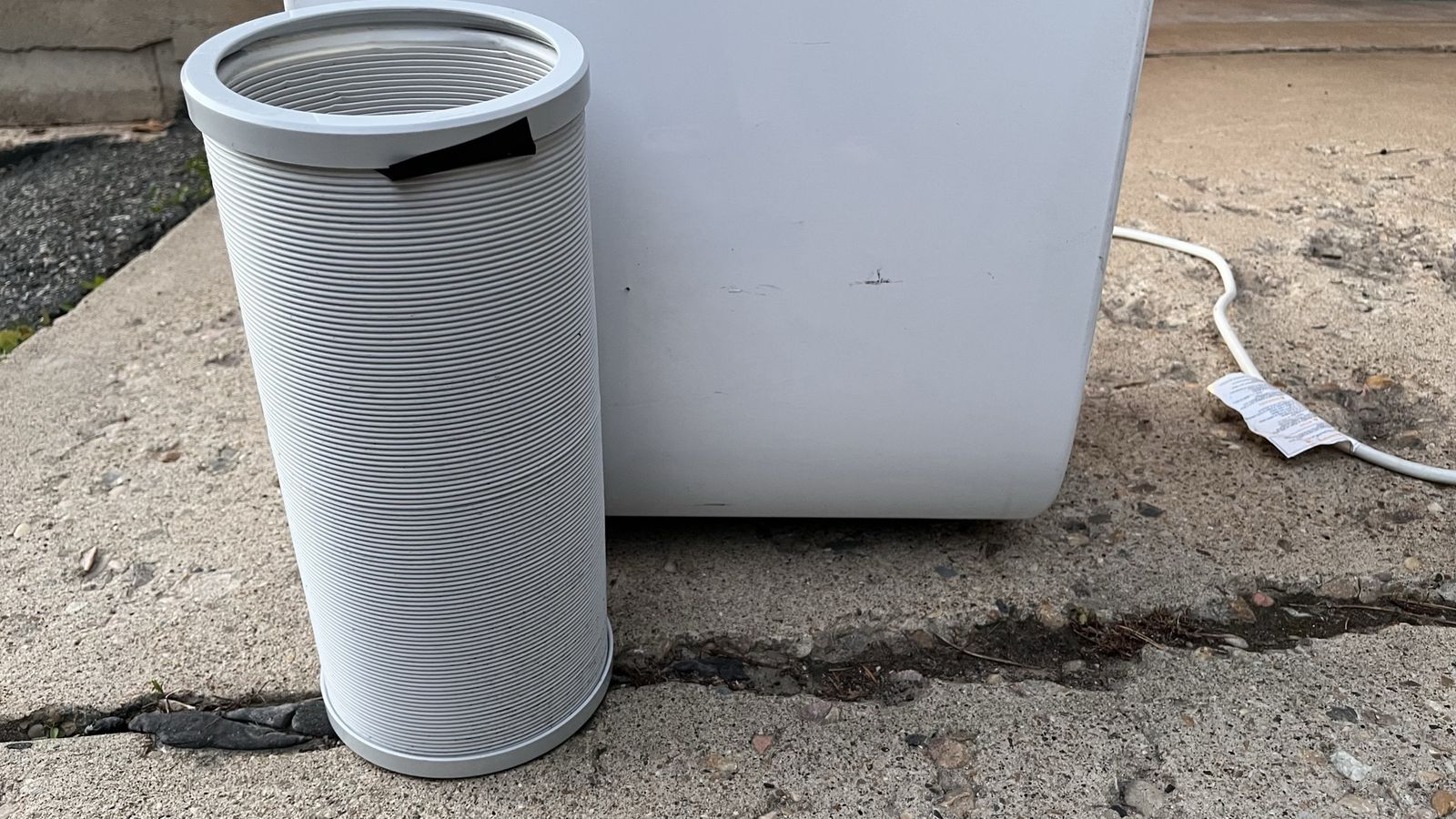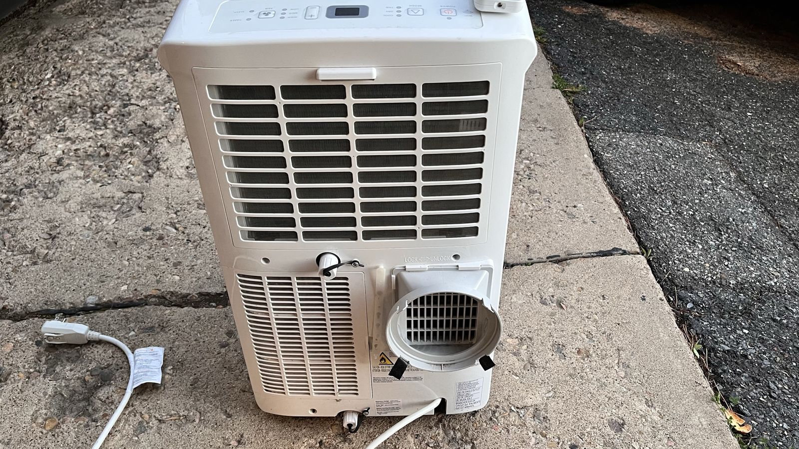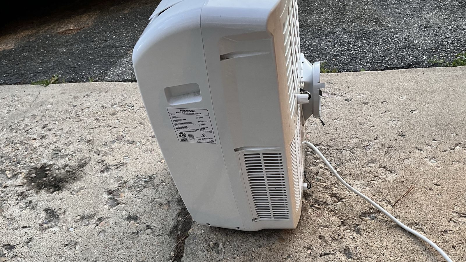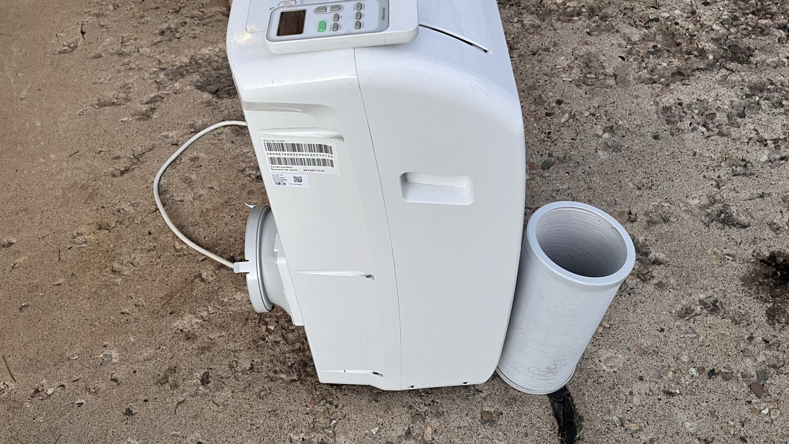 VenmoWhite Hisense portable AC unit. Comes with the remote, power cord, and exhaust hose. Great for keeping cool.