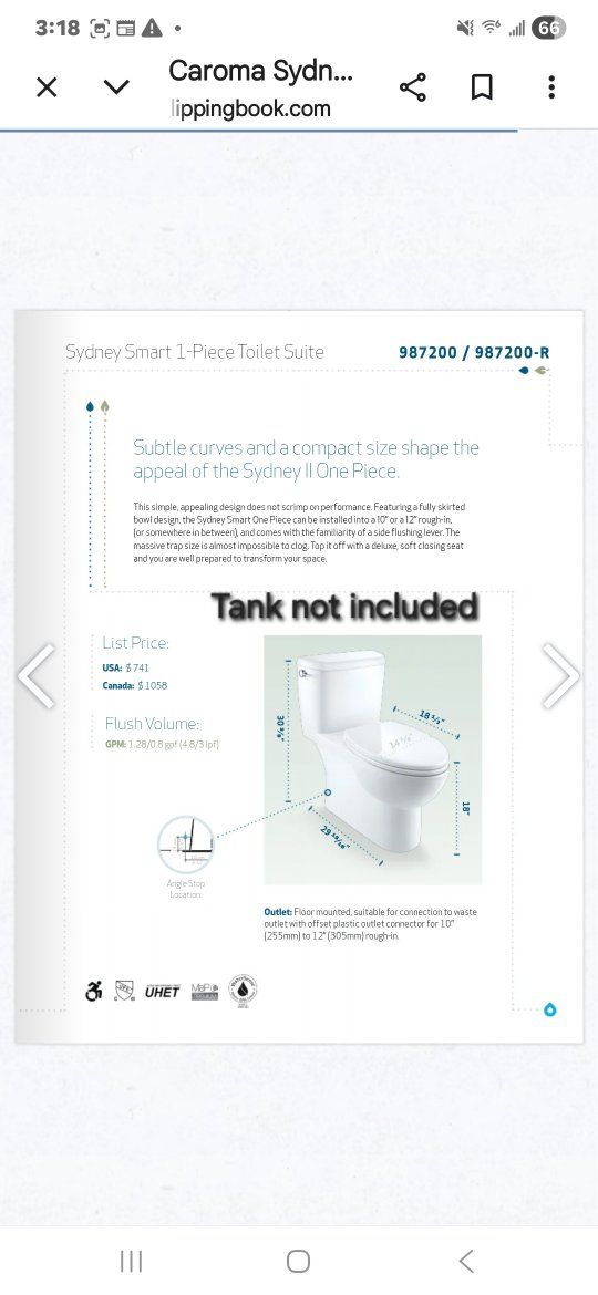 VenmoCaroma Sydney Smart ii Toilet bowl and soft Close lid. Elongated. Tank not included. New in box. Located in Herriman. Pickup only