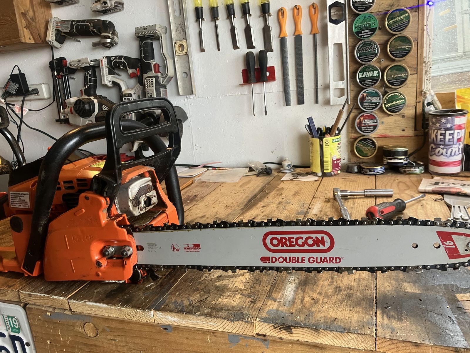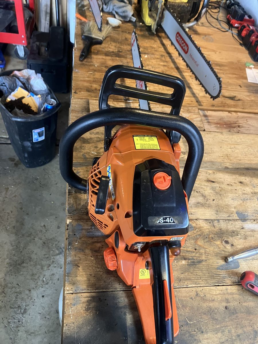 Venmoecho cs-400 18" 40cc chainsaw. Runs great! Comes with- 3 new bars/ 3 new chains/ 25 used chains, a case and bar oil. Bar and chain are also fairly new on it. Askin 180$