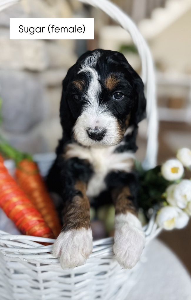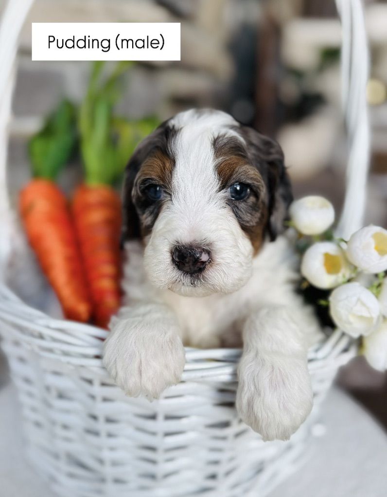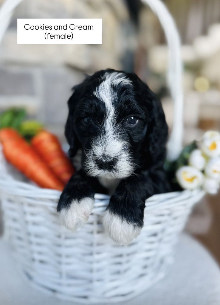 Our 4.5 week old Medium Bernedoodles are being raised inside our home, surrounded by constant love, attention, and a spotless, carefully maintained environment. From the moment they were born, they’ve been handled daily to ensure the best temperaments, confidence, and socialization.
