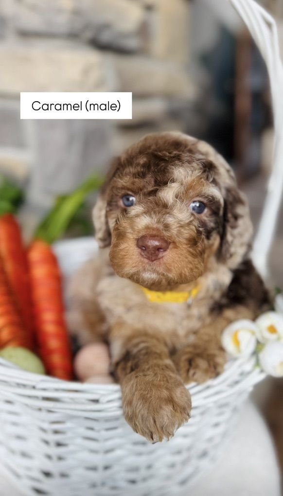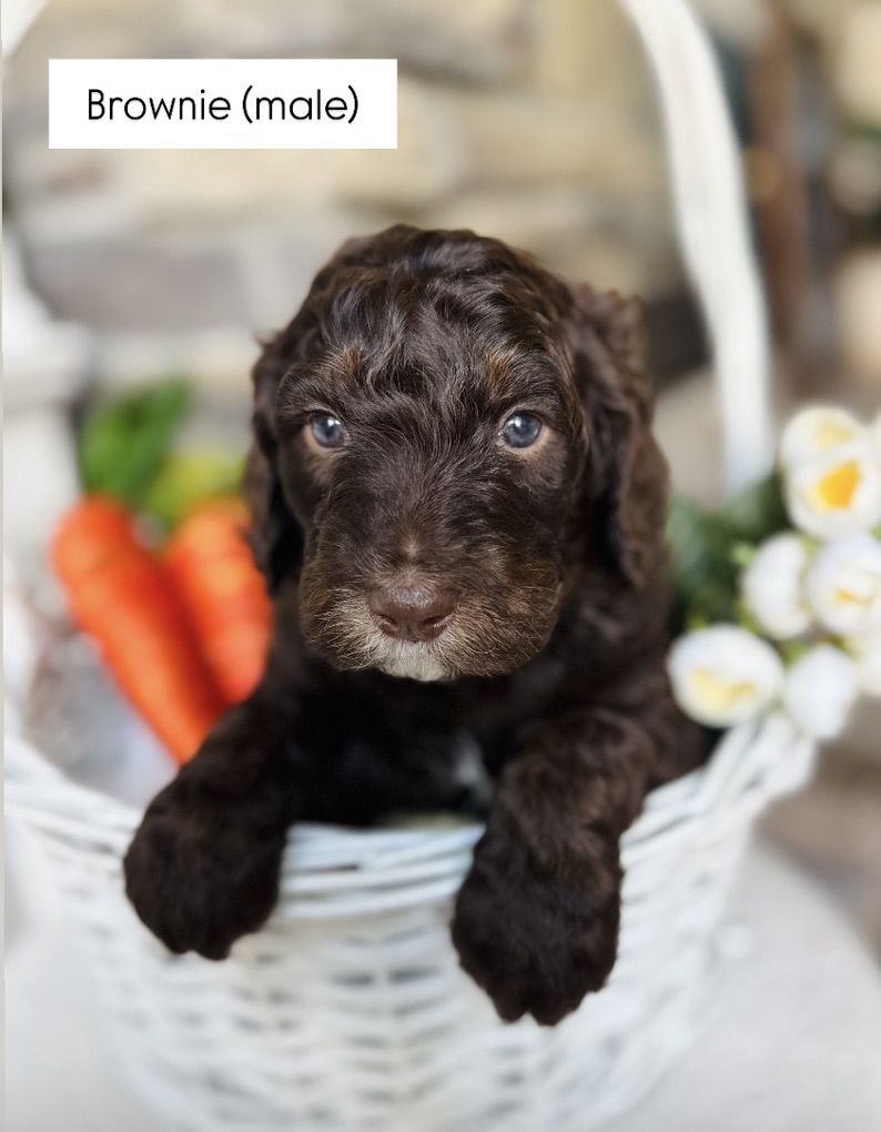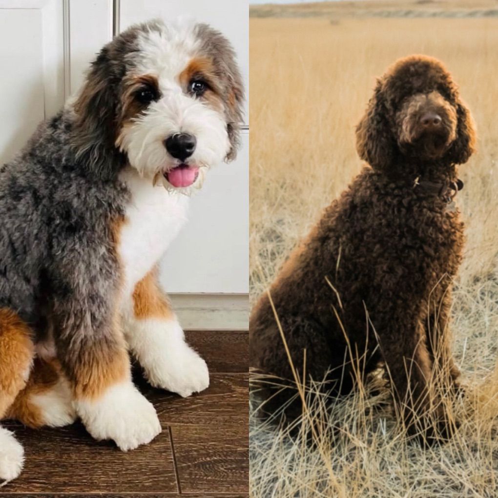Parents: • Mom: Stunning Blue Merle Ultra Bernedoodle • Dad: Chocolate Lab with amazing genetics