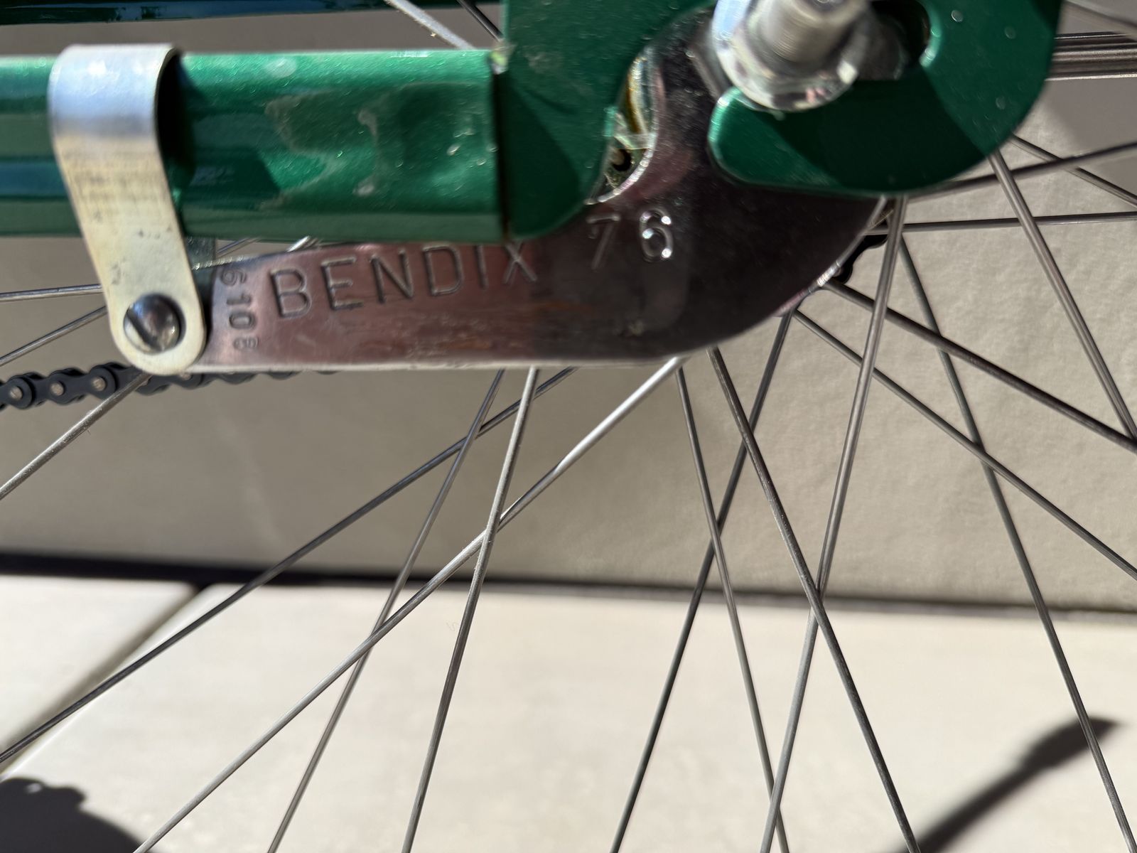 Authenticity confirmed by two independent date stamps — Bendix 76 rear hub stamped 1976, and original Carlisle Lightning Dart nylon whitewall tires 26x2.125.