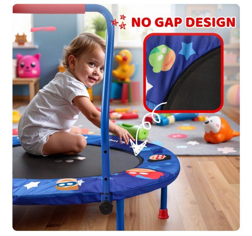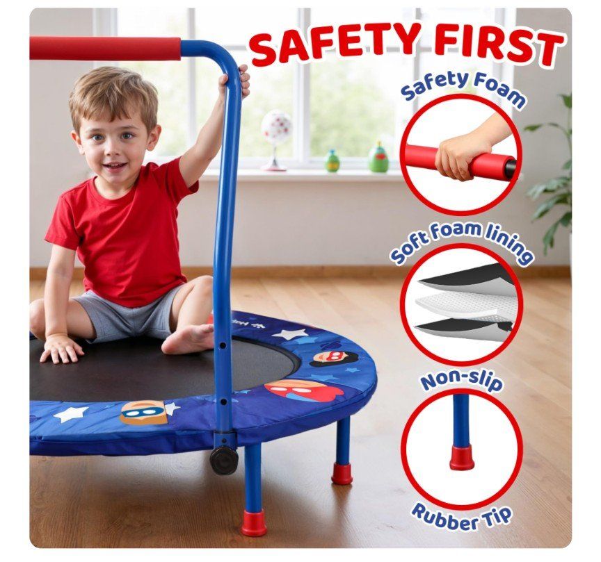 Active Play For Safety Growth - Help your child burn energy, build balance, and stay active in a fun and safe way. This 36” kids trampoline encourages daily movement, improving coordination and confidence while keeping little ones entertained indoors or outdoors. A perfect way to support healthy development and joyful play every day.